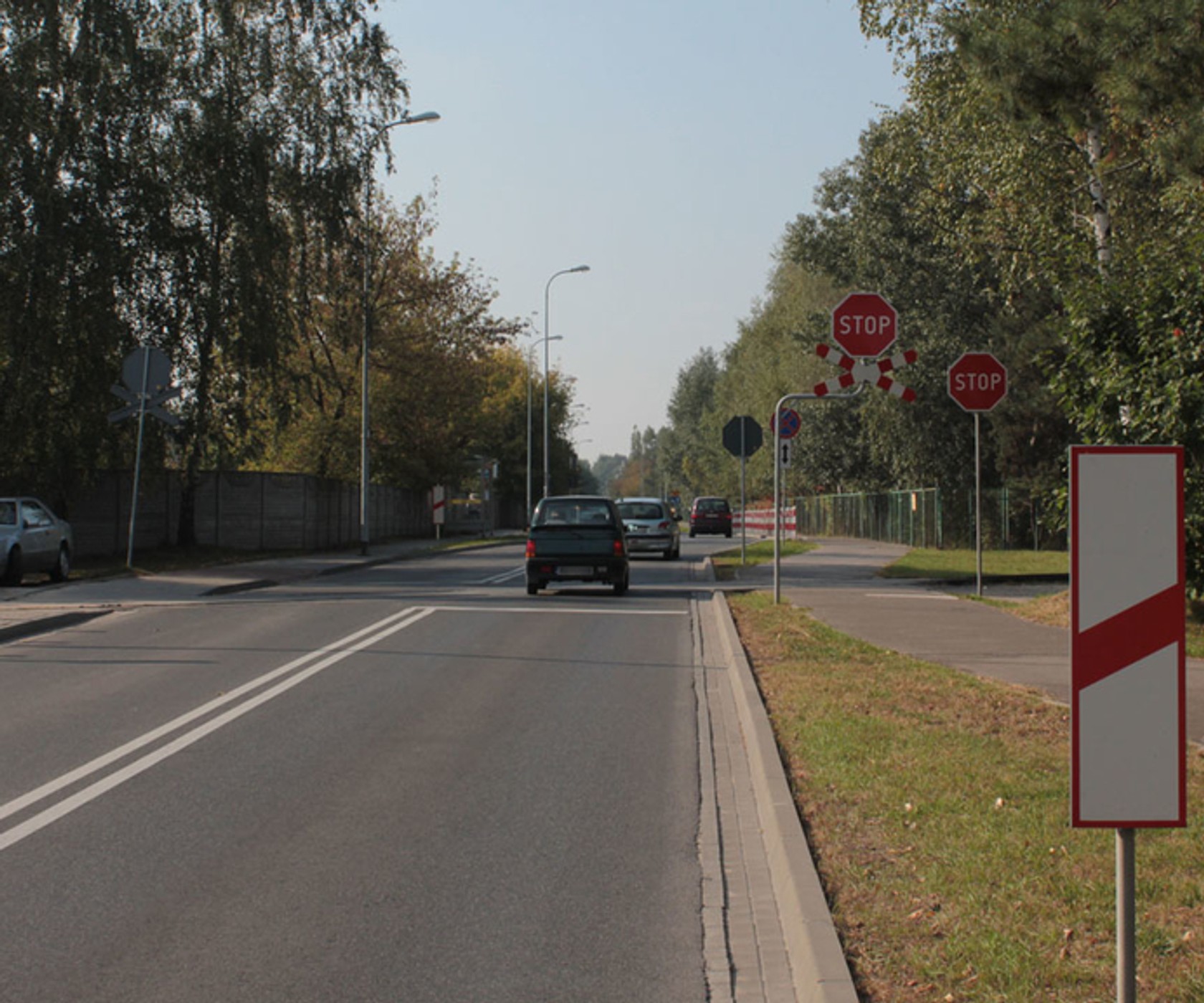 Przepis Kodeksu drogowego mówi: „Zabrania się postoju: przed i za przejazdem kolejowym, po obu stronach drogi, na odcinku od przejazdu kolejowego do słupka wskaźnikowego z jedną kreską;” Następne pytaniePytanie 5/20