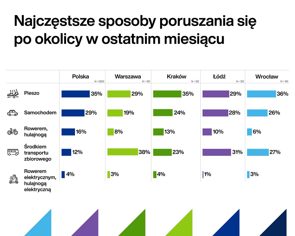 W lipcu 2022 r. agencja badawcza Research Collective zrealizowała na zlecenie agencji Profeina ankietę, która miała określić zwyczaje transportowe Polaków. W badaniu wzięło udział 2,2 tys. dorosłych osób i co trzecia z nich przyznała, że stara się ograniczać korzystanie z samochodu jako kierowca. Zaraz po spacerze (35 proc.) to jednak auto było wskazywane jako najczęstszy sposób poruszania się (29 proc.), a dopiero potem rower (16 proc.) czy transport zbiorowy (12 proc.).