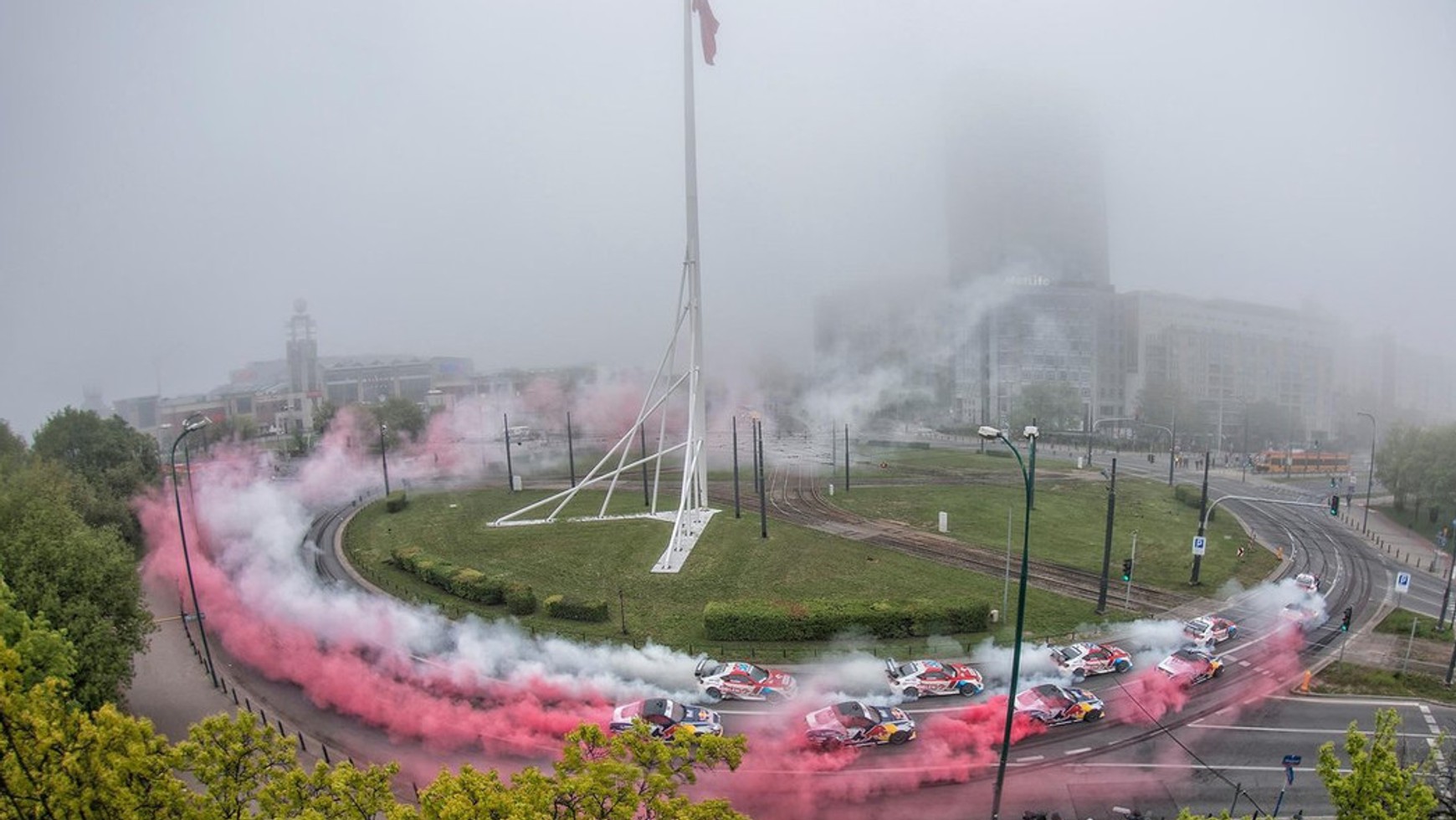 Kuba Przygoński i Aleksandr Grinchuk mogli dymem spod tylnych kół swoich samochodów stworzyć wyjątkową, biało-czerwoną kompozycję ślizgając się w duecie pod największą flagą w Polsce.