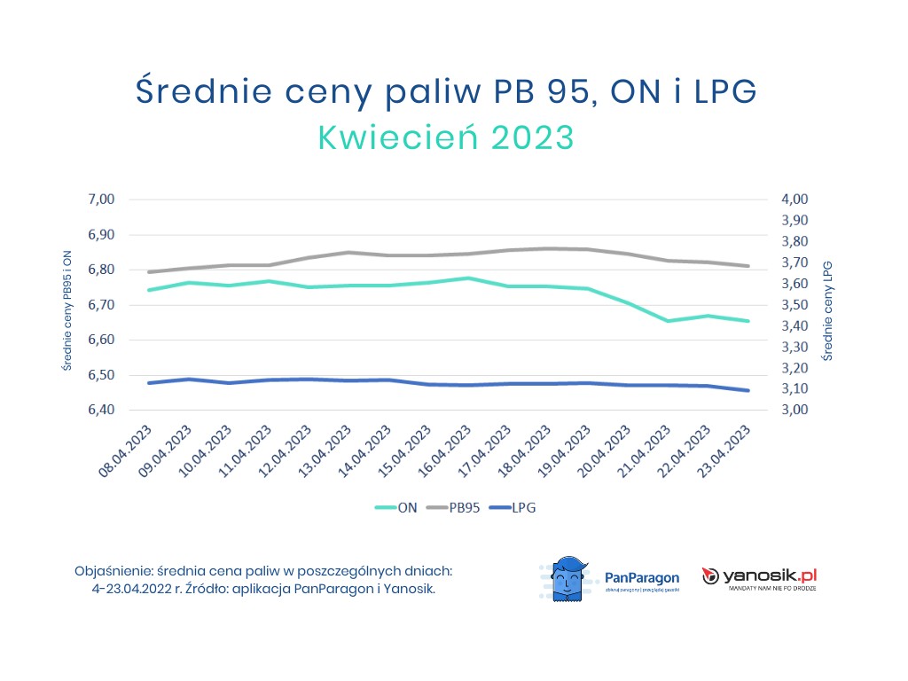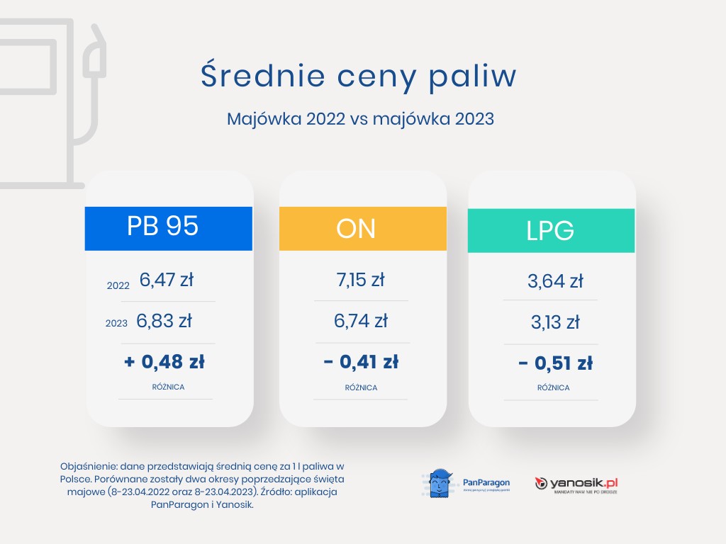 - Na mniejsze koszty podróży niż w poprzednim roku mogą liczyć kierowcy, którzy tankują auta z silnikiem Diesla oraz właściciele samochodów z instalacją gazową. W ciągu 12 miesięcy jeden litr LPG potaniał aż o około 51 gr, natomiast litr ON o 41 gr – informuje Małgorzata Dąbrowska z aplikacji Yanosik. – Drożej niż w zeszłym roku mają natomiast właściciele benzyniaków. Cena za litr PB 95 jest obecnie wyższa średnio o 48 groszy niż w kwietniu 2022 r. – dodaje.