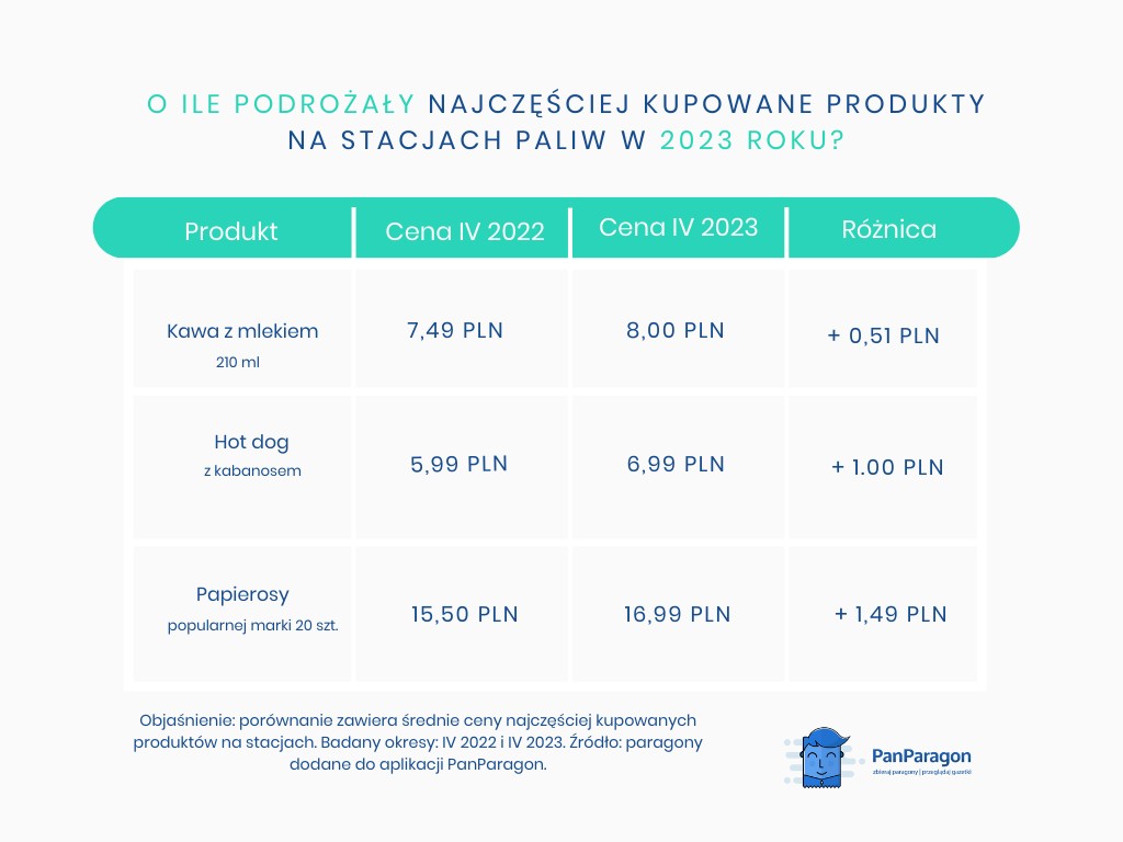 Eksperci z Yanosika i aplikacji PanParagon nie przyglądali się jednak tylko cenom paliw. Sprawdzili także ceny produktów, które najczęściej kupujemy na stacjach benzynowych. W bezpośrednim porównaniu ich rok do roku okazuje się, że różnice mogą szokować.