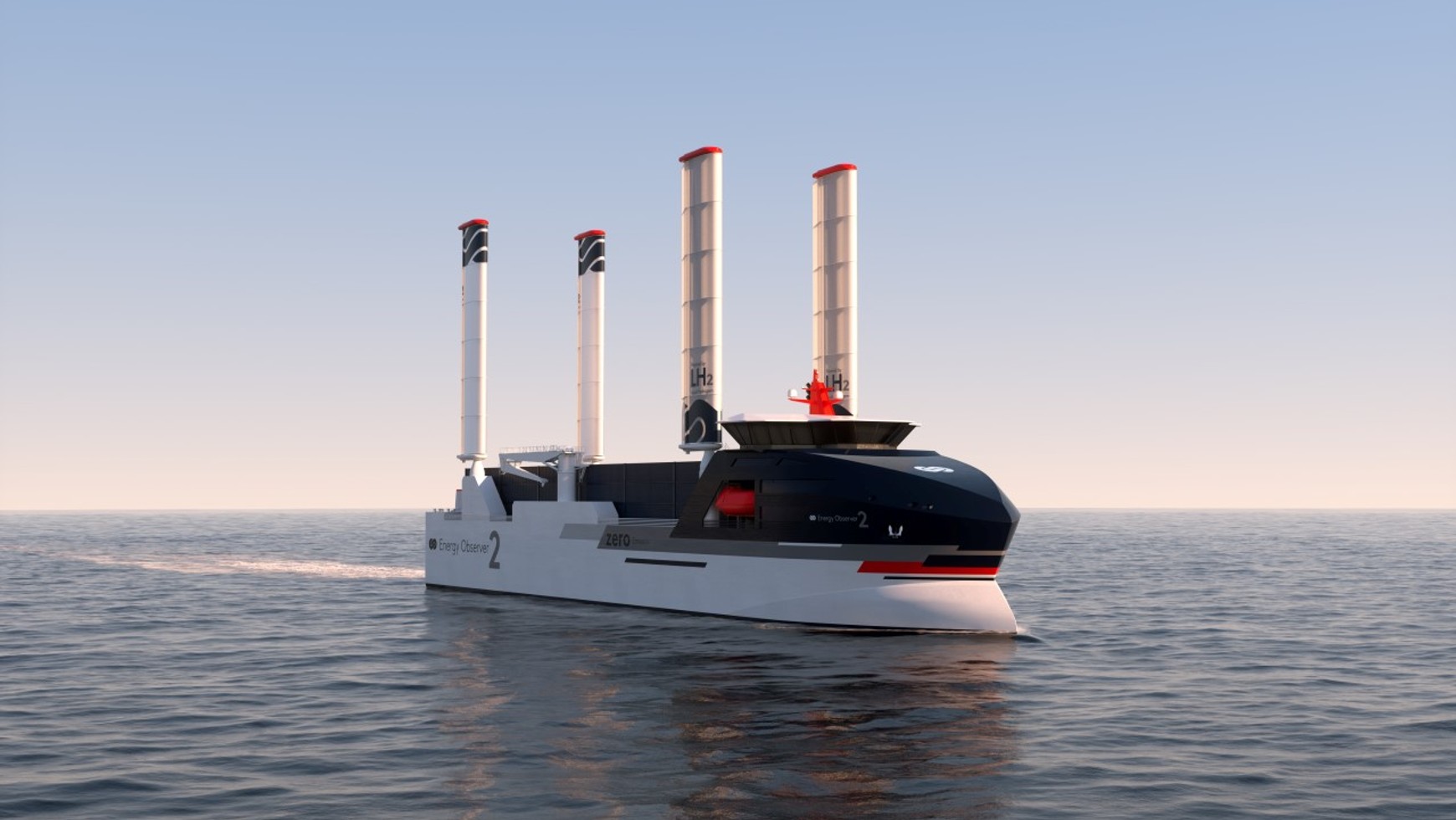 Zespół Energy Observera zaprezentował niedawno swój nowy produkt, który miałby przyspieszyć dekarbonizację towarowego transportu morskiego. Specyfikacja statku stanowi odpowiedź na pilną potrzebę odnowienia flot wielozadaniowych statków towarowych o nośności do Pięć tys. ton. Energy Observer 2 ma długość 120 metrów, szerokość 22 metry, zanurzenie 5,5 metra i nośność właśnie pięć tys. ton. Powierzchnia żagli wynosi 1450 m². Ekonomiczna średnia prędkość jednostki to 12 węzłów. Statek jest napędzany silnikiem elektrycznym o mocy cztery MW, zasilanym przez generator RexH2 z ogniwami paliwowymi Toyoty o mocy 2,5 MW. Wodór, który trafia do generatora RexH2, jest magazynowany w ciekłej postaci w zbiornikach o pojemności 1000 metrów sześciennych, które mieszczą 70 ton tego paliwa. Zapewniają one zasięg do czterech tys. mil morskich, czyli 7400 km.