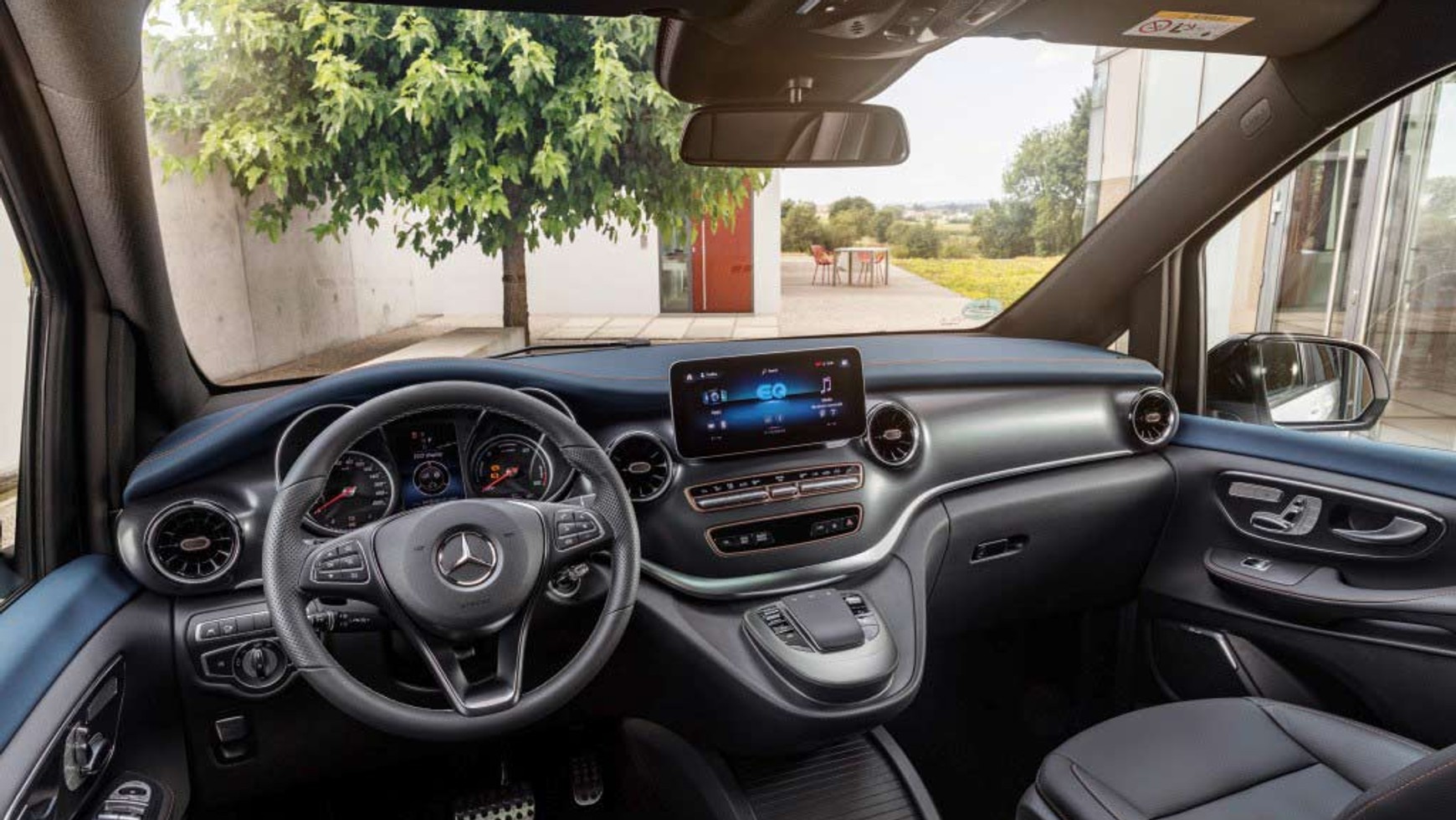 W tym doskonale cichym i nowoczesnym wnętrzu tym większe pole do popisu ma też system multimedialny MBUX ze sterowaniem głosowym, które można uruchomić, wypowiadając hasło: Hej, Mercedes. System świetnie rozpoznaje zwroty potoczne i np. bez trudu znajdzie głodnym pasażerom najbliższą restaurację, a zmarzniętym – podgrzeje temperaturę w kabinie. Umieszczona w menu głównym 10,25-calowego wyświetlacza o wysokiej rozdzielczości ikonka EQ to serce systemu. Stąd kierowca ma dostęp do określonych sekcji i ustawień. Obejmują one m.in.: aktualny poziom ładowania, ustawienie czasu wyjazdu oraz wyświetlanie historii przepływu i zużycia energii. MBUX wykorzystuje także swoje zalety poza pojazdem w połączeniu z aplikacją Mercedes me. Z salonu lub biura kierowcy EQV mogą planować swoje miejsca docelowe, wprowadzić godzinę odjazdu i ustawić pożądaną temperaturę we wnętrzu.