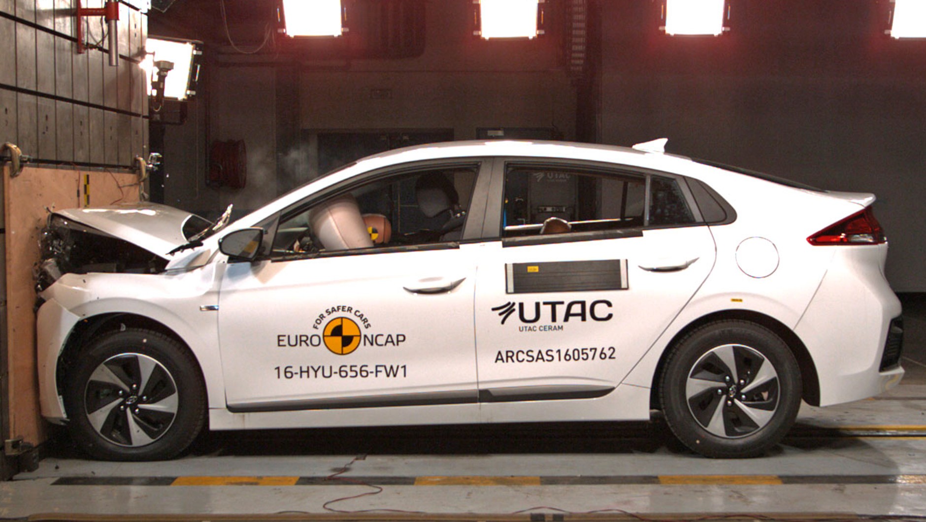 Wśród małych aut rodzinnych najlepszy wynik uzyskał Hyundai Ioniq, który za ochronę osoby dorosłej otrzymał 34,9 punktów (91 proc. możliwych do zdobycia), za ochronę dziecka – 39,4 punktów (80 proc.), za ochronę pieszego – 29,8 punktów (70 proc.) oraz za systemy bezpieczeństwa – 9,9 punktów (82 proc.)
