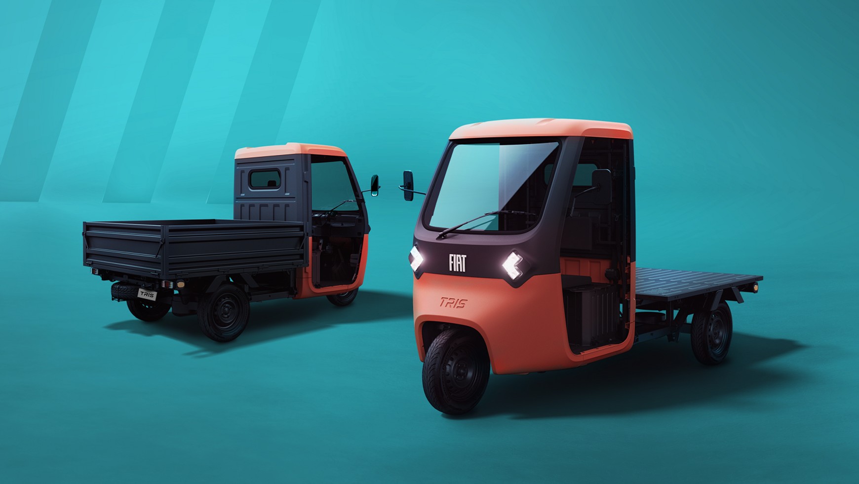Fiat Tris to ultralekki elektryczny pojazd użytkowy. Klienci będą go mogli zamówić w trzech konfiguracjach: jako kabinę z "gołym" podwoziem, kabinę z platformą lub w wersji pikap. To naprawdę malutki pojazd – ma zaledwie 3,17 m długości i imponująco mały promień skrętu wynoszący tylko 3,05 m. Co ważne, będzie mógł przewieźć o wiele cięższe ładunki niż Piaggio Ape – na pace zmieści się standardowa europaleta, a towar może ważyć maksymalnie 540 kg, czyli mniej więcej drugie tyle ile waży sam pojazd (dmc to 1025 kg).