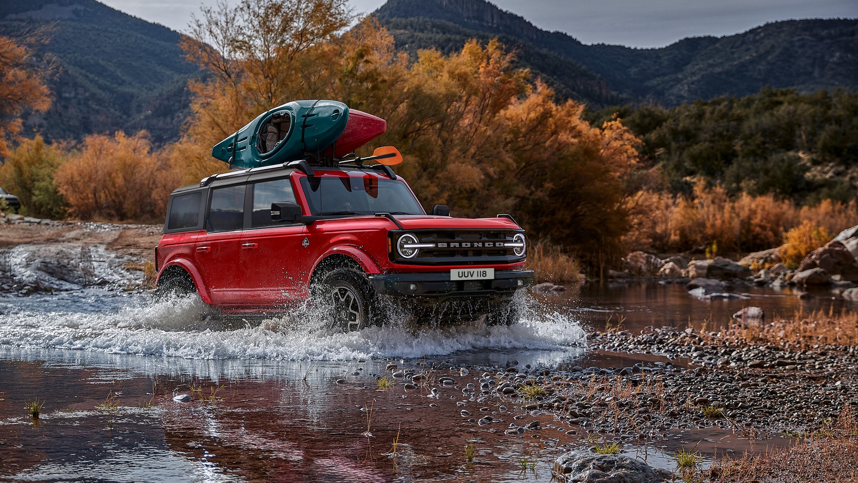 Obecny Ford Bronco wrócił na rynek po 25 latach nieobecności i bez wątpienia jest kontynuacją pierwowzoru, co potwierdzają zastosowane rozwiązania wzornicze. Krótkie zwisy przedni i tylny, rozciągająca się na całą szerokość charakterystyczna atrapa chłodnicy i okrągłe reflektory już na pierwszy rzut oka potwierdzają, że mamy do czynienia z nową wersją klasyka. Na uwagę zasługują m.in. kwadratowe panele poszycia, które zostały zaprojektowane tak, aby ułatwiały obserwowanie skrajów nadwozia SUV-a, np. w trakcie manewrowania podczas przepraw w trudnym terenie.