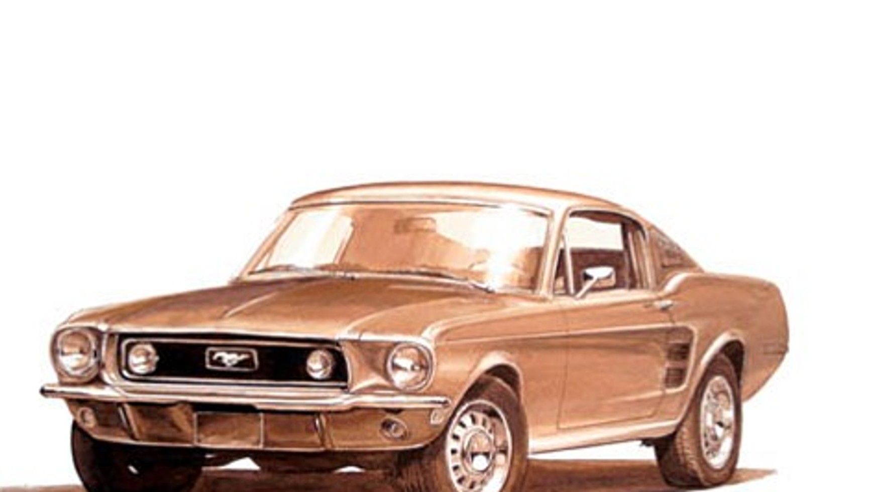 Powstała koncepcja produkcji niedrogich coupé i kabrioletów z układem siedzeń 2+2. Projekt ten nazwano T-5, a później nadano mu nazwę Mustang. Prototyp wyposażony w silnik V4 zapożyczony z niemieckiej linii Forda nie zdobył uznania. Dopiero zmiana koncepcji na 4-miejscowy, młodzieżowy samochód sportowy wzbudziła zainteresowanie klientów. Pierwszą serię Mustangów nazywano 1964 1/2, ponieważ zapoczątkowano ją w połowie sezonu, 17 kwietnia 1964 roku, czyli 7 miesięcy później niż inne modele Forda przeznaczone na ten rok. Ponadto do wyboru oferowano 6 skrzyń biegów, po 3 rodzaje zawieszenia, systemy hamulcowe i rozmiary opon. W ciągu 4 miesięcy sprzedano 400 tys. egzemplarzy, czyli roczną produkcję. W 1967 roku wyprodukowano ponad 71 tys. sztuk modelu Fastback. Samochody z 1967 roku wyposażano w silniki: rzędowy, 6-cylindrowy, o poj. 3,3 l i mocy 120 KM oraz V8 o pojemności 4,7 l i mocach 200, 225 i 271 KM. Jednostka 5.0 rozwijała moc 230 KM, 6.4 - 320 i 325 KM oraz 7.0/390 KM Samochód z 271-konnym silnikiem V8 osiągał prędkość 205 km/h.