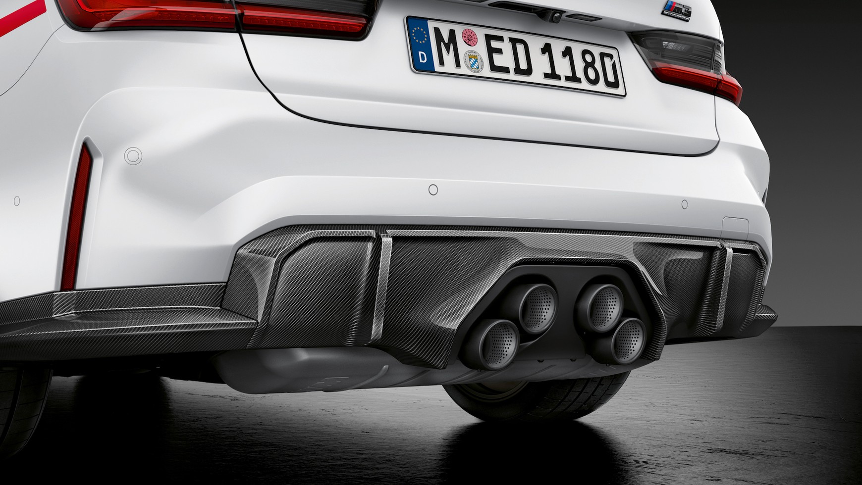 Nie mogło się też obejść bez akcesoriów z gatunku tuningu optycznego i lekkich, kutych felg. Mamy więc m.in.: karbonową dokładkę przednią, karbonowy splitter oraz karbonowe lotki aerodynamiczne. Jak chwali się BMW, foliowanie wyścigowe pozwala jeszcze bardziej zindywidualizować te sportowe modele. Zestaw dekoracyjny zawiera precyzyjnie dopasowane do geometrii pojazdu boczne folie samoprzylepne w trzech kolorach BMW M: niebieskim, czerwonym i fioletowym. Oferta kół kompletnych do nowych modeli obejmuje w chwili ich wprowadzenia na rynek dwa zestawy kompletnych kół letnich. Model podstawowy to kute obręcze M Performance Y Spoke 963M w kolorze Frozen Gunmetal Grey z napisem M Performance i ogumieniem mieszanym w rozmiarze 19 cali z przodu i 20 cali z tyłu. Wisienka na torcie to kute obręcze BMW M Performance 1000M Cross Spoke w matowym kolorze złotego brązu lub matowym kolorze Jet Black z napisem M Performance. Koła oferowane są w rozmiarze 20 cali z przodu i 21 cali z tyłu. Do tego dokupić będzie można też np. „zestaw zimowy” z możliwością montażu łańcuchów.