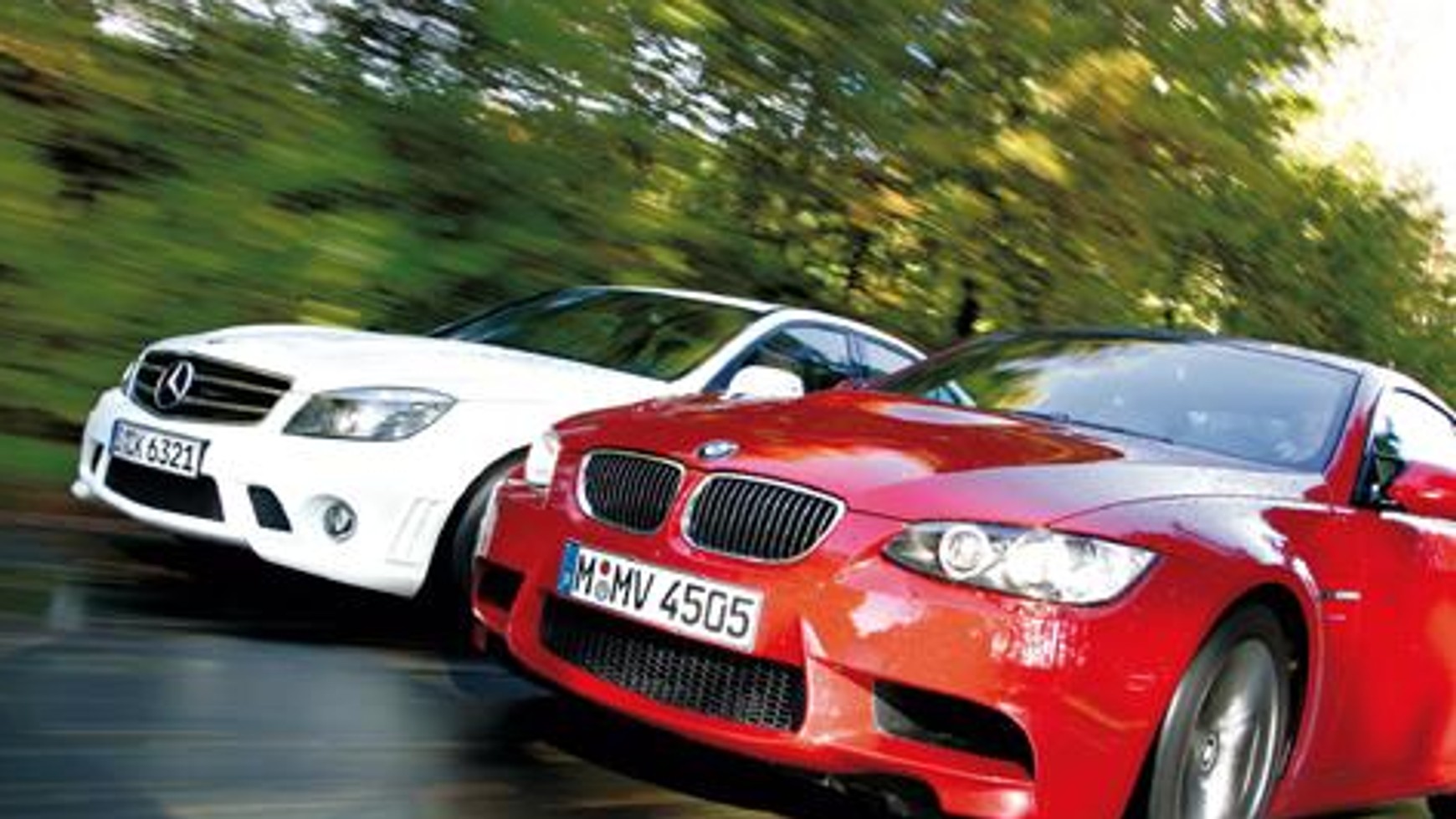 Postanowiliśmy sprawdzić, które z testowanych aut jest bardziej warte nieprzespanych nocy? BMW M3 czy Mercedes C 63 AMG?Muskularna karoseria BMW, uwieńczona czarnym dachem z włókien szklanych, powoduje zwiększone wydzielanie hormonów szczęścia już na postoju. W porównaniu z nim Mercedes wygląda przysadziście. Oczywiście, nadwozie czterodrzwiowego C 63 jest praktyczniejsze od dwudrzwiowego konkurenta, ale jednocześnie wygląda mniej rasowo. Już po pierwszym przekręceniu kluczyka trudno się oprzeć AMG. Silnik 6,2 litra odzywa się jak wulkan tuż przed wybuchem. Ośmiocylindrowy bas wywołuje gęsią skórkę i przyjemne mrowienie w żołądku. Pomimo hymnów, jakie wygrywa ośmiocylindrowiec M3 na wysokich obrotach, melomani na pewno wybiorą dźwięk pracy silnika C 63 AMG. Nasi "sportowcy" muszą mieć niezwykłe osiągi. Rzut oka na tabelę z wynikami testu obydwu aut zapiera dech w piersiach, przy czym Mercedes okazuje się lepszy od BMW. Olbrzymia moc C 63 (457 KM) oraz moment obrotowy o maksymalnej wartości 600 Nm są przenoszone na oś tylną. Gdyby nie reagująca z wyczuciem elektronika, właściciel AMG byłby równie częstym klientem sklepów z oponami, jak i stacji paliw. Spokojni kierowcy muszą się liczyć ze średnim zużyciem paliwa na poziomie 15 l/100 km. Jednak bez trudu mogą podwoić ten rezultat. Prowadzenie każdego z testowanych samochodów powoduje od razu uśmiech od ucha do ucha, który nie znika nawet na nierównościach, gdzieo dużej twardości zawieszeń informowany jest kręgosłup. 457-konny silnik łatwo rozpędza ważącego 1,8 tony Mercedesa do 100 km/h w zaledwie 4,7 s. Samochód dynamicznie przyspiesza aż do 250 km/h, po osiągnięciu których elektronika ściąga cugle. Takie osiągi są możliwe także dzięki błyskawicznie przełączającej skrzyni automatycznej o 7 przełożeniach. Skuteczne hamowanie zapewniają gigantyczne tarcze z przodu o średnicy 36 cm (tylne: 33 cm). 420-konne BMW jest lżejsze o 200 kg. Pomimo to podczas rozpędzania musi wąchać spaliny z 4 rur wydechowych Mercedesa. Wprawdzie C 63 przyspiesza nieco lepiej od BMW wyposażonego w przekładnię manualną, ale w tej klasie samochodów chodzi właśnieo dziesiąte części sekundy. Na torze wyścigowym 8 cylindrów M3 wkręca się na 8500 obr./min i natychmiast reaguje na ruchy pedału gazu. Podczas jazdy wyczynowej można docenić precyzyjny układ kierowniczy BMW, dokładnie przełączającą skrzynię biegów oraz prowadzenie na zakrętach. Ale wtedy okazuje się także, że M3 jest bardziej podsterowne niż C 63, jego mechanizm różnicowy pracuje mniej elastycznie, a kierowca siedzi zbyt wysoko. Fani Mercedesa muszą uznać wyższość układu kierowniczego BMW. W C 63 nie reaguje równie ostro i czysto jak w M3. Mercedes ma nie tylko lepsze sportowe siedzenia. Na zakrętach pozostaje niezwykle neutralny. Tylko przy wyłączonym ESP ma tendencję do nadsterowności. Cóż, dla przeciętnie zarabiających kierowców obydwa auta pozostaną przedmiotem westchnień i powodem nieprzespanych nocy. PodsumowanieJestem w rozterce. Obydwa samochody to auta moich marzeń i trudno się zdecydować na konkretny model. W AMG najbardziej podoba mi się gang silnika, a w BMW zachowanie układu jezdnego.red. Janusz BorkowskiStawiam na M3. To auto może jest bardziej wymagające od Mercedesa, ale za to daje więcej frajdy z prowadzenia. Ma manualną skrzynię biegów i niesamowity, wysokoobrotowy silnik.red. Michał Krasnodębski