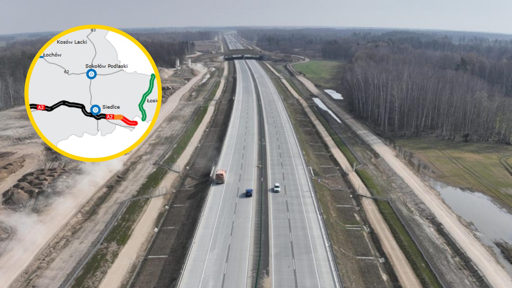 Generalna Dyrekcja Dróg Krajowych i Autostrad zapowiedziała też, że również jeszcze przed majówką będzie można pojechać nowym odcinkiem autostrady A2. Chodzi tutaj o fragment zlokalizowany pomiędzy węzłem Łukowisko i węzłem Biała Podlaska, a więc de facto dwoma z budowanych odcinków, bo inwestycję tę podzielono na odcinki Łukowisko — Swory oraz Śwory — Biała Podlaska. Za powstanie tych fragmentów autostrady A2 odpowiadają firmy Intercor oraz Polaqua.