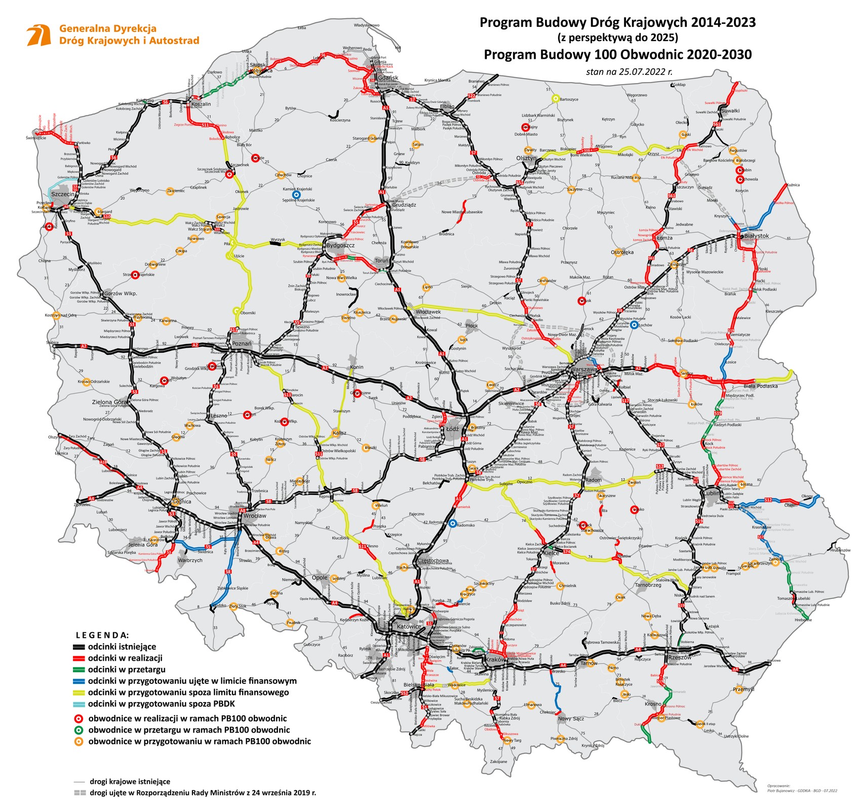 W ramach Programu Budowy Dróg Krajowych na lata 2014-2023 będzie to 1327,9 km dróg o wartości ok. 52 mld zł. oraz 115,6 km w ramach Programu budowy 100 obwodnic na lata 2020-2030. Tutaj wartość projektów opiewa na ok. 2 mld zł. Tyle dróg aktualnie powstaje, ale na etapie przygotowania inwestycji jak i procedowania postępowań przetargowych są kolejne zadania. Na etapie przetargu na realizację jest 18 zadań z PBDK o łącznej długości 244 km, a kolejne 80 zadań z PBDK o łącznej długości 1803,6 km oraz 85 obwodnic z PB100 o łącznej długości około 744 km znajduje się w przygotowaniu. Prace budowlane prowadzone są w całej Polsce.