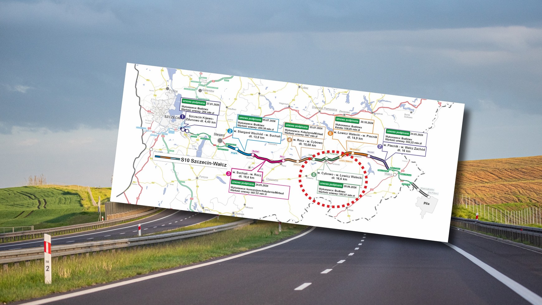- Odcinek S10 Cybowo - Łowicz Wałecki mierzy 16,6 km, a jego projektowanie już zostało zakończone