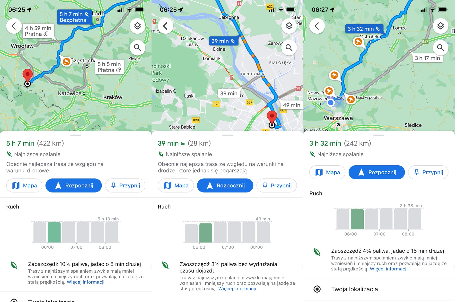 - Użytkownik będzie mógł wybrać, czy chce jechać drogą eko, czy najszybszą, o ile nie będą to te same trasy