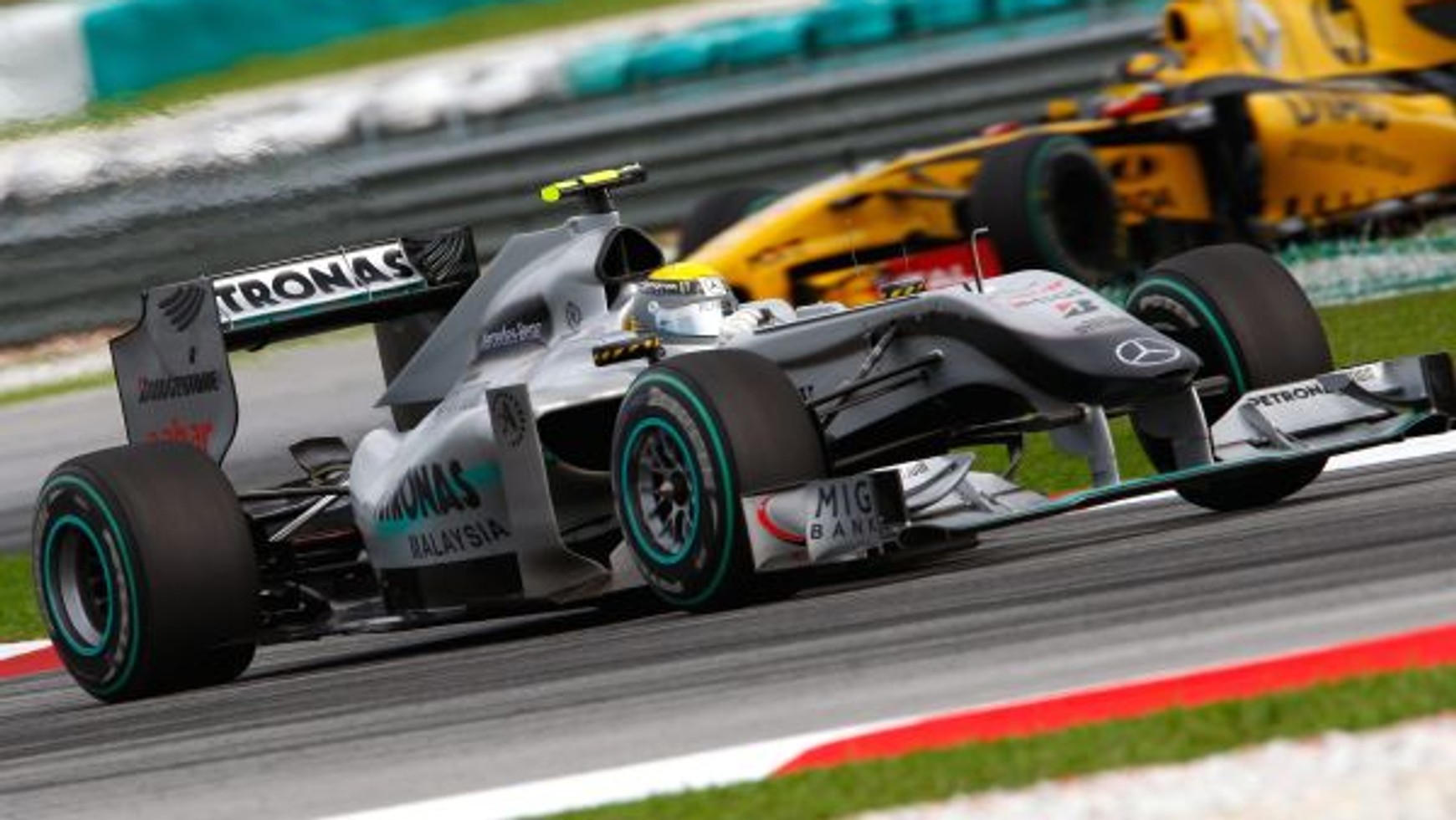 Button znów zastosował oryginalną taktykę, zjeżdżając po twarde opony już po 9 okrążeniach. Michael Schumacher zaliczył ratowanie na zakręcie 6, po czym zaparkował Mercedesa na poboczu, pierwszy raz odpadając z wyścigu w Malezji. Schumi zgubił nakrętkę lewego tylnego koła. - Nie wiem, jak to się mogło stać - powiedział stacji RTL. - Jechałem parę metrów bez nakrętki i czułem, że nie trzyma koło. Ostatnio przytrafiło się to mojemu koledze Vettelowi.