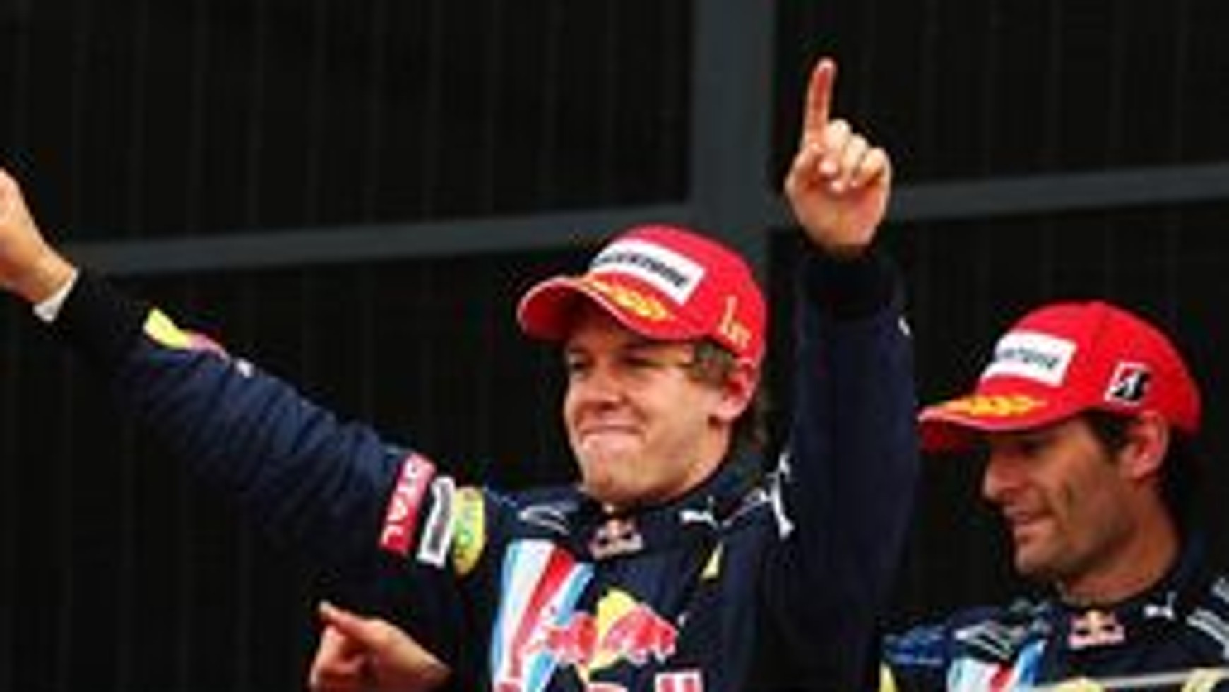 54. okr. - Sebastian Vettel ustanawia rekord jednego okrążenia. Piękny pojedynek w wykonaniu Marka Webbera i goniącego go Jensona Buttona.