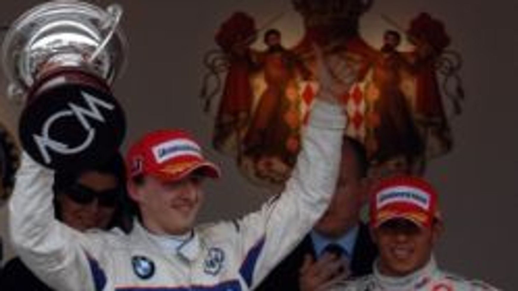 Trzech najlepszych na podium: Lewis Hamilton, Robert Kubica i Felipe Massa.