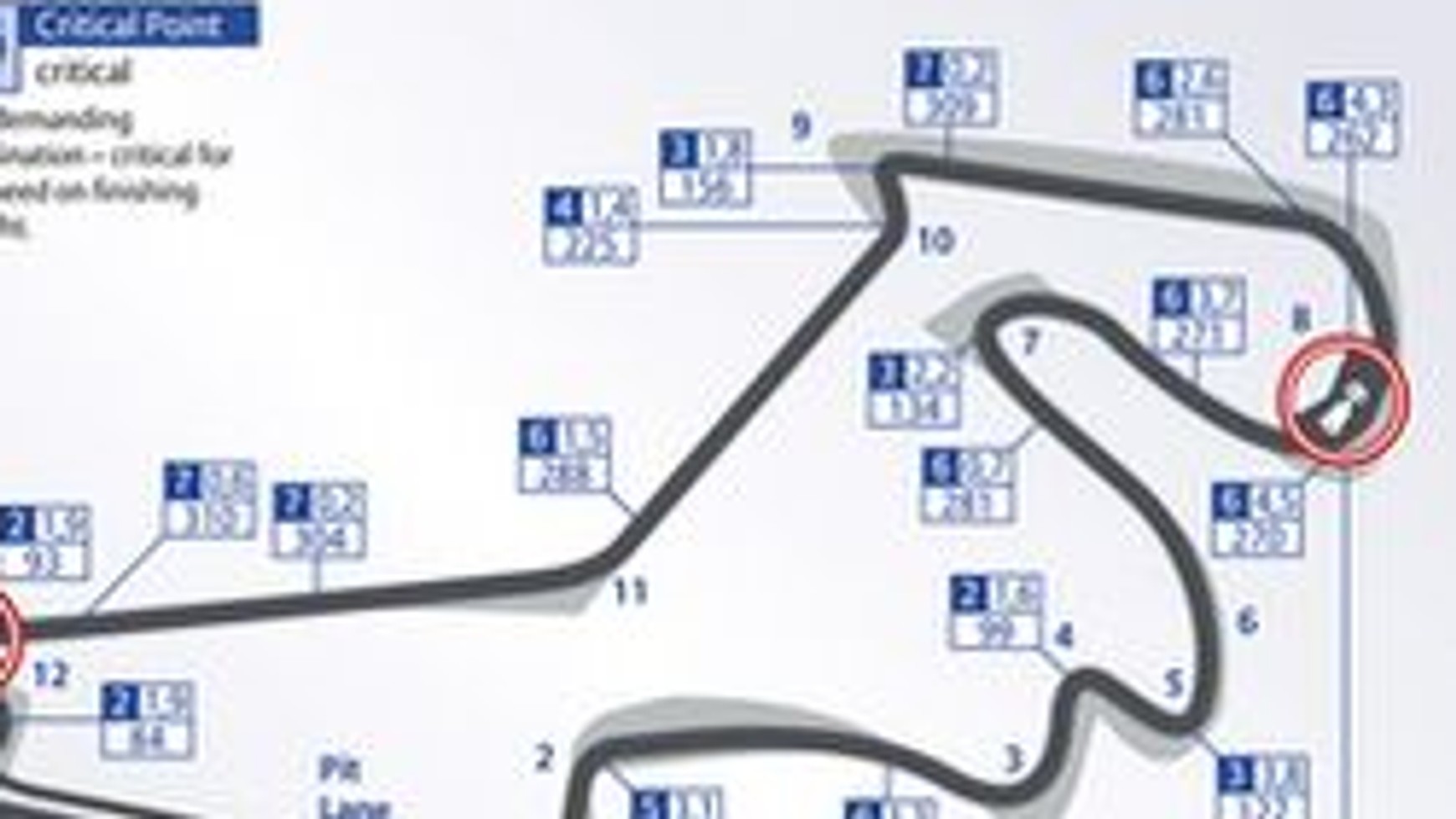 Kolejna ciekawostką jest koniec długiej prostej, która łączy się z kilkoma zakrętami przed ostatnią prosta. W tym miejscu można spodziewać się nawet prędkości 320 km/h. Nagłe jej zmniejszenie może stanowić znakomity moment do wyprzedzania.