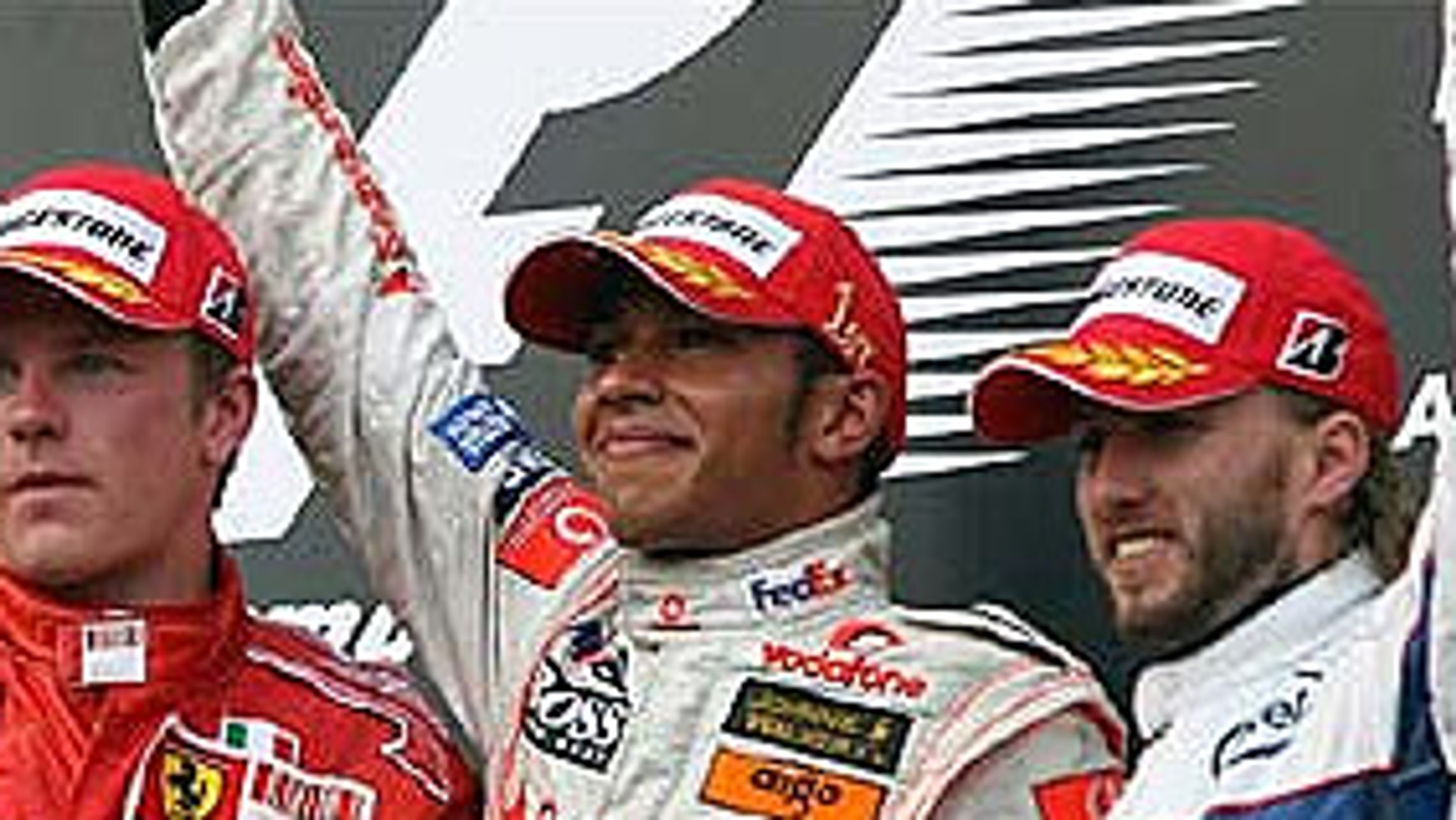 1. Lewis HAMILTONMcLaren-Mercedes1h 35:52,991 2. Kimi RAIKKONENFerrari+0,715 3. Nick HEIDFELDBMW Sauber+43,129 4. Fernando ALONSOMcLaren-Mercedes+44,858 5. Robert KUBICABMW Sauber+47,616 6. Ralf SCHUMACHERToyota+50,669 7. Nico ROSBERGWilliams-Toyota+59,139 8. Heikki KOVALAINENRenault+1:08,104 9. Mark WEBBERRed Bull-Renault+1:16,33110. Jarno TRULLIToyota+1 11. David COULTHARDRed Bull-Renault+1 12. Giancarlo FISICHELLA Renault+1 13. Felipe MASSAFerrari+1 14. Alex WURZWilliams-Toyota+1 15. Takuma SATOSuper Aguri-Honda+1 16. Sebastian VETTELToro Rosso-Ferrari+117. Adrian SUTILSpyker-Ferrari+2 18. Rubens BARRICHELLOHonda+2
