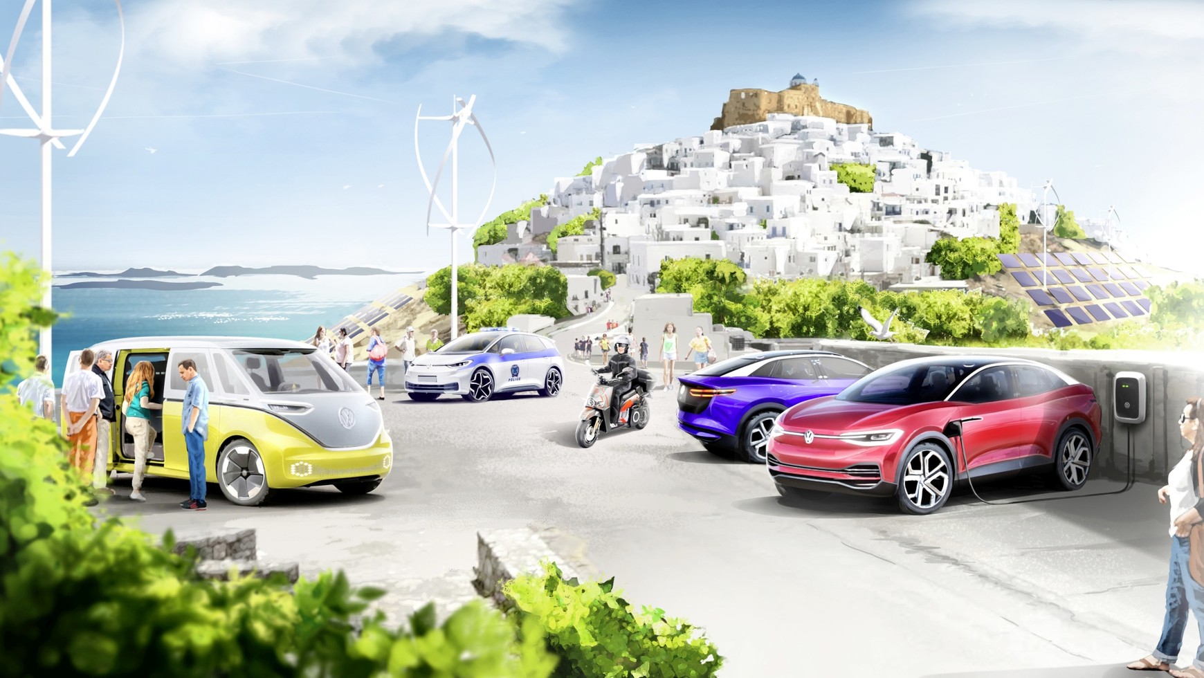W sumie z wyspy na Morzu Egejskim zniknie prawie 1500 pojazdów (zarejestrowano łącznie 1494 sztuki) z silnikami spalinowymi. Okazuje się, że nie wszystkie zostaną zastąpione wedle zasady „sztuka za sztukę”. Grupa Volkswagena dostarczy bowiem na grecką wyspę ok. 1000 pojazdów elektrycznych. Nie będą to jednak tylko Volkswageny ID.3 czy ID.4. Pojawią się także elektryczne skutery i rowery Seata. Do zastąpienia są także dwa autobusy kursujące po wyspie. Do wymiany będzie również cała flota radiowozów, karetek pogotowania i innych służb ratowniczych oraz komunalnych.