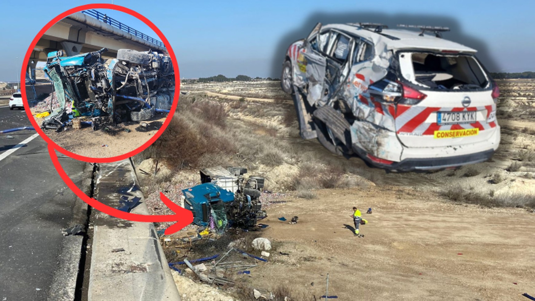 Informację tą precyzuje portal aragondigital.es, który pisze, że ciężarówka jadąca drogą Z-40 zderzyła się z pojazdem serwisowym marki Nissan, który zatrzymał się na poboczu autostrady.