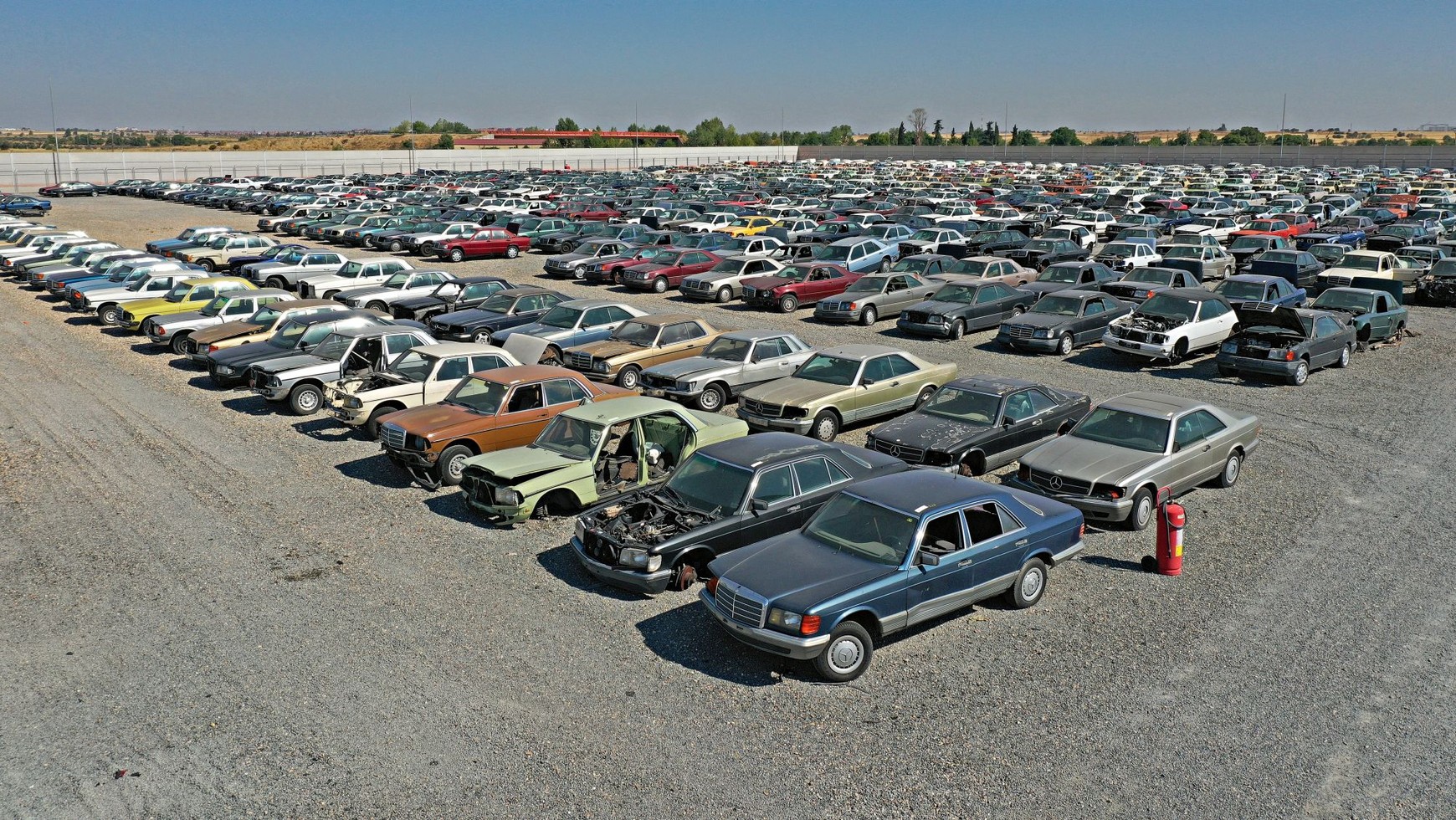 Co jeszcze znaleźliśmy? Najprzeróżniejsze amerykańskie krążowniki szos, auta francuskie, jedno całe Porsche 944 oraz tylną połówkę drugiego, niezliczone Mercedesy typoszeregów 124, 126 i 140, klasy G. Także w Hiszpanii niemieckie youngtimery są teraz na czasie. Solidne auta z małą ilością plastiku – podsumowuje Benjamin. Oprócz nich także auta terenowe, dostawcze, Jaguary oraz najprzeróżniejsze Ople i Fordy, częściowo w całkiem dobrym stanie. Znaleźliśmy też Audi A8 w wersji opancerzonej. Audi 100, rocznik 82, ofiarę zamachu bombowego baskijskiej organizacji terrorystycznej ETA też mamy. Całkiem nieźle wygląda. Ale nasz szef kazał je odstawić, bo Audi chce kupić to auto do swojego muzeum – mówi Benjamin przy 37-stopniowym upale, który na niczym nieosłoniętym placu jest jeszcze dotkliwszy.