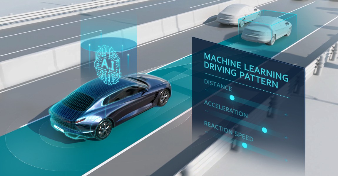Opracowany przez Hyundai inteligentny tempomat wykorzystujący uczenie maszynowe działa następująco: czujniki, przednia kamera oraz radar zbierają informacje o warunkach panujących na drodze i przesyłają je do centralnego komputera; następnie komputer wyodrębnia istotne szczegóły z zebranych informacji, aby zdefiniować styl jazdy kierowcy. W trakcie tego procesu wykorzystywana jest technologia korzystająca ze sztucznej inteligencji zwana algorytmem uczenia maszynowego.