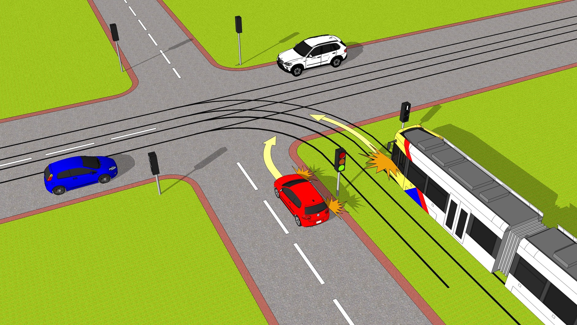 Jeśli ruch na skrzyżowaniu kierowany jest sygnalizatorem S-3, kierujący mogą poruszać się wyłącznie w kierunkach wskazanych strzałkami – w tym przypadku wyłącznie w lewo. "Sygnały świetlne nadawane przez sygnalizator kierunkowy S-3 dotyczą kierujących jadących w kierunkach wskazanych strzałką".