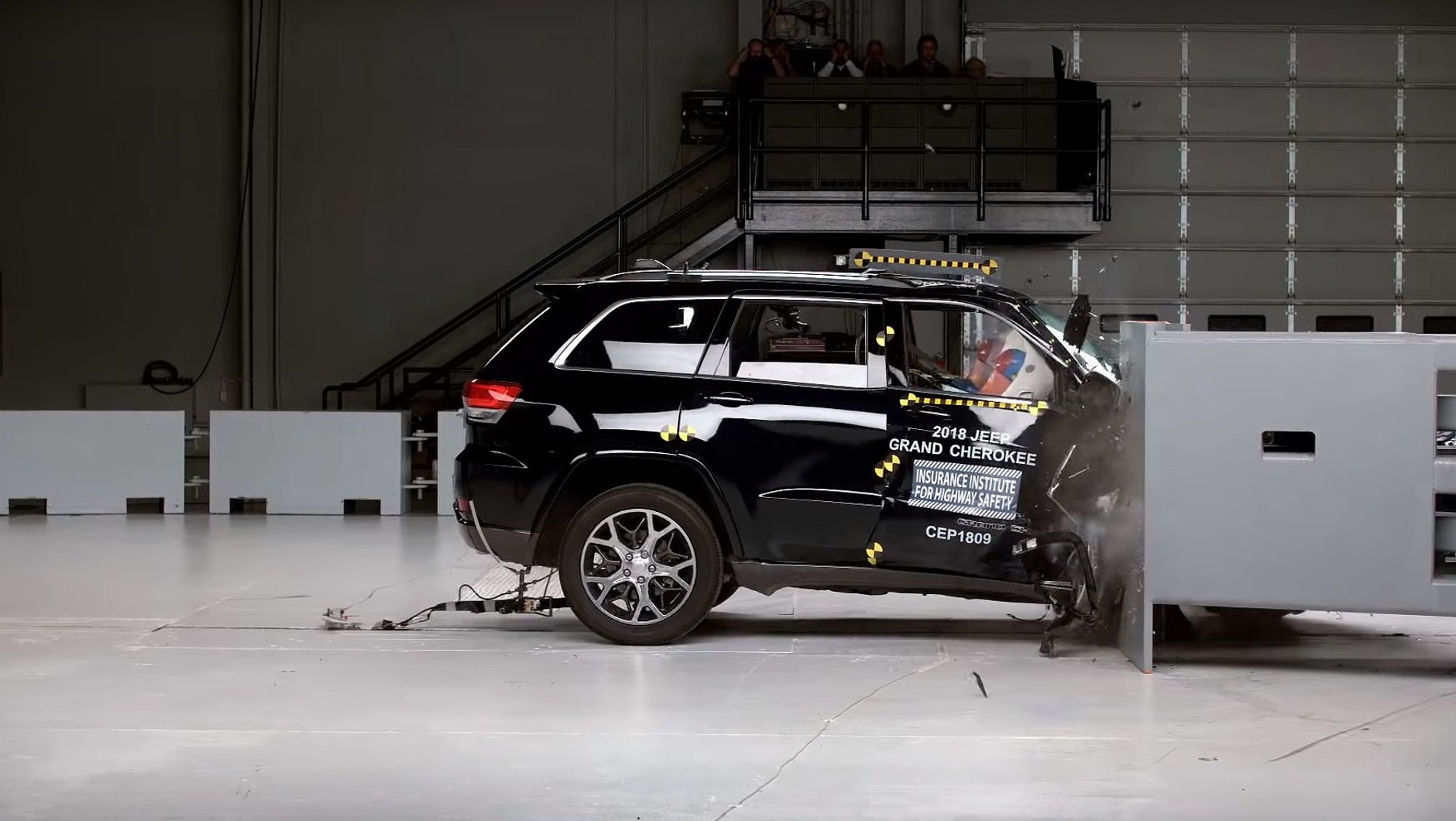 W przypadku Jeepa Grand Cherokee jest równie niepokojąco. Dolny zawias drzwi mocno przesunął się do kabiny ograniczając przestrzeń na nogi. W Jeepie stwierdzono również niski poziom ochrony głowy. W trakcie testu okazało się, że głowa manekina uderzyła z dużą siłą w deskę rozdzielczą (mimo prawidłowej aktywacji poduszki powietrznej). Na tym nie koniec. Ponieważ w trakcie testu kurtyny boczne nie napełniły się a drzwi otworzyły, to głowa manekina wysunęła się poza linię boczną samochodu.