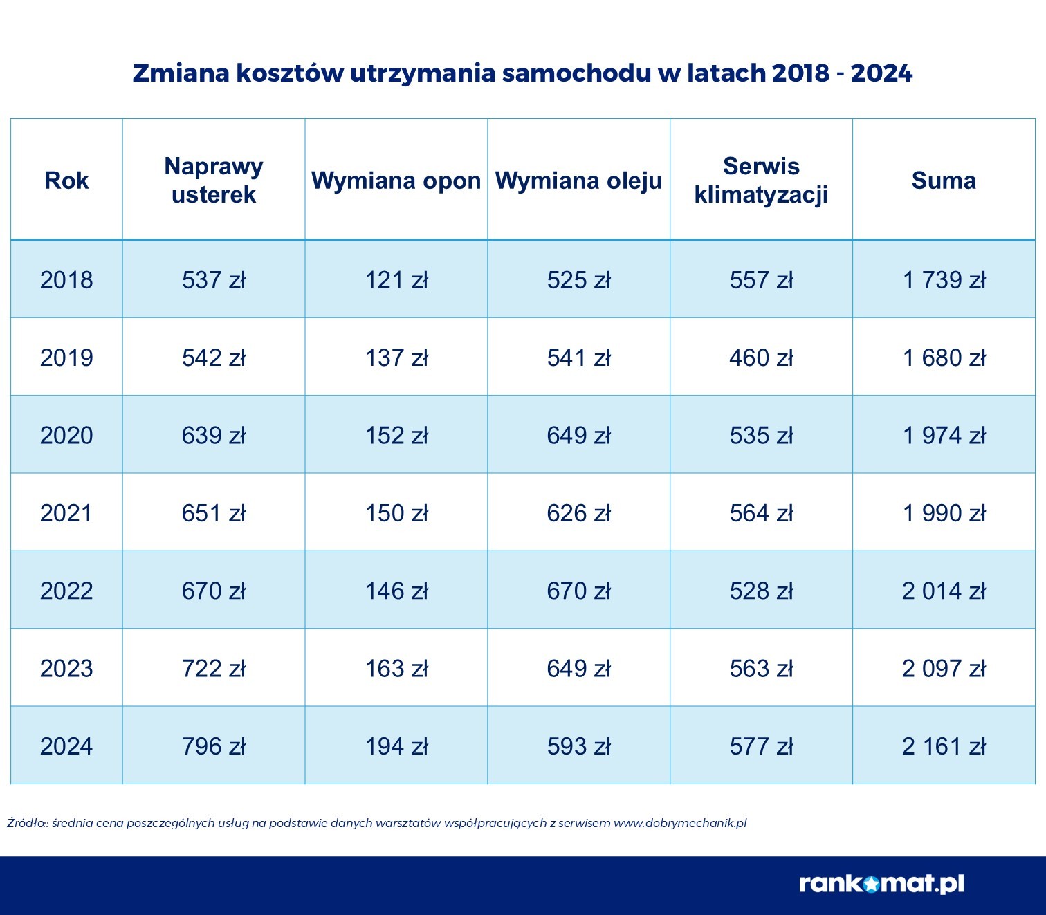 Jak zauważają eksperci Rankomat.pl, największa podwyżka dotyczyła obowiązkowej polisy OC, która podrożała średnio o 130 zł. To oznacza, że w 2024 r. utrzymanie samochodu kosztowało średnio 2811 zł. To kwota o 194 zł wyższa niż przed rokiem i o 292 zł niż dwa lata temu.