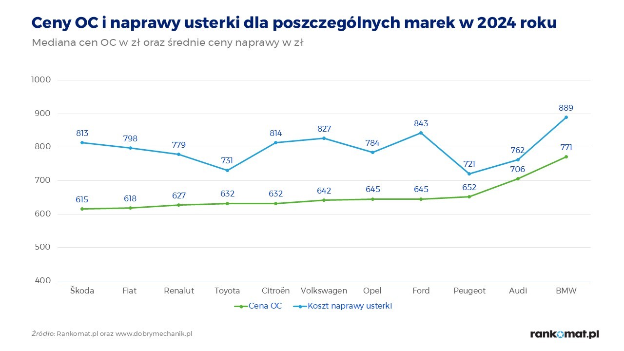 Udostępnione dane dowodzą, że utrzymanie samochodów jednych marek może być droższe od innych. Np. statystyczny właściciel BMW przeznaczył na ten cel o 214 zł więcej, niż wynosi mediana. Większe wydatki czekały również posiadaczy Fordów (+41 zł), Volkswagenów (+22 zł) i Audi (+21 zł). Z kolei niższe koszty utrzymania dotyczą Toyot (-84 zł), Peugeotów (-74 zł) i Renault (-40 zł).