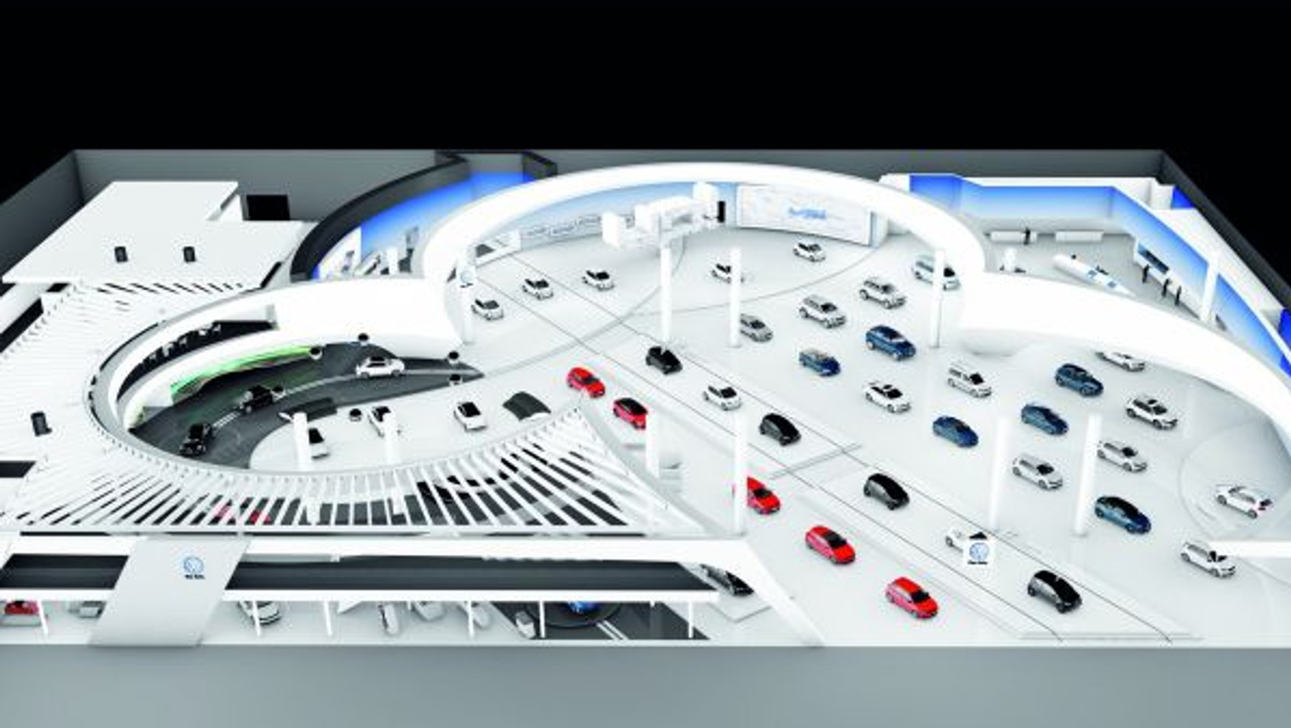 Na 8893 m2 powierzchni wystawienniczej przypominającej chmurę, Volkswagen zaprezentuje 54 pojazdy. W centrum, we własnej przestrzeni multimedialniej, znajdować się będzie nowy up!. Kolejne egzemplarze tego miejskiego auta będą ustawione na białych, błyszczących "carwalks", przecinających całą powierzchnię stoiska. Obok znajdować się będzie "Beetle Showroom" oraz Golfy Cabriolet i Tiguany.
