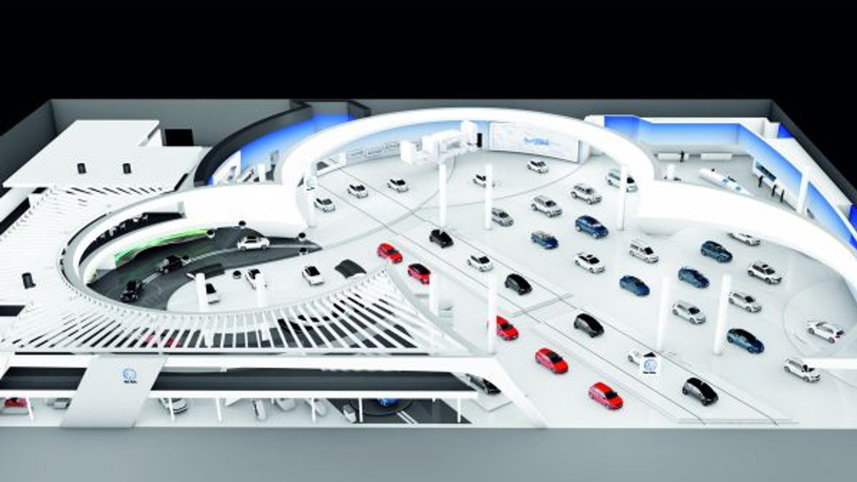 Przed rozpoczęciem budowy stoiska zespół Volkswagena zmagał się z logistyką, począwszy od materiałów budowlanych, poprzez okablowanie systemów IT dla multimediów, aż po instalację oświetlenia. Aby perfekcyjnie oświetlić eksponaty oraz ponad 100 elementów wystawy zainstalowano około 2100 lamp i ułożono prawie 80 kilometrów przewodów.