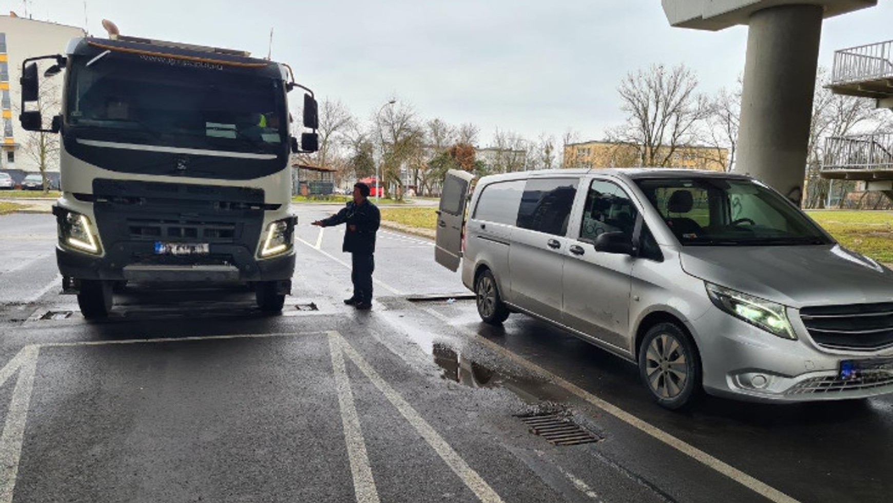 Konsekwencją tak znaczącego przeładowania pojazdu było przekroczenie dopuszczalnych nacisków. W przypadku podwójnej osi napędowej wagi pokazały wartość 26,5 t. Tymczasem dopuszczalna wartość wynosiła 19 t. Niewielkie przekroczenie odnotowano również dla drugiej pojedynczej osi nienapędowej — tu nacisk wyniósł 10,3 t zamiast dopuszczalnych 10 t.