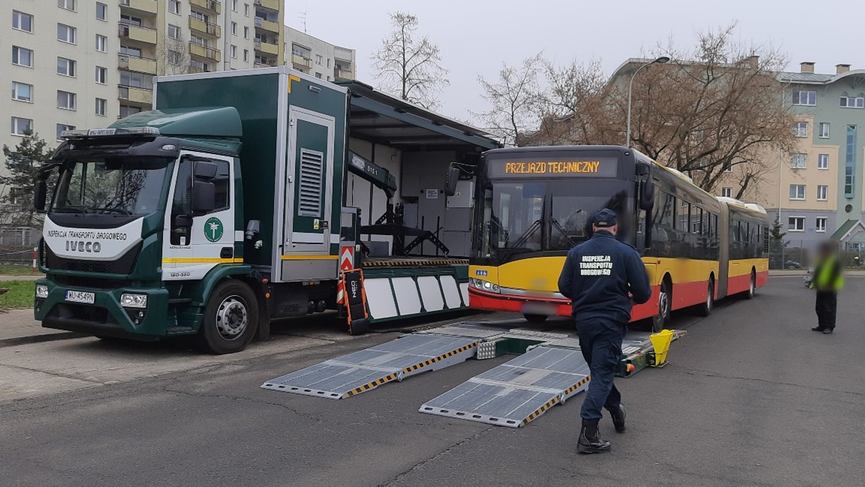 Inspektorzy wykorzystali do kontroli autobusów nowoczesną Mobilną Stację Diagnostyczną. To "szyta na miarę" ciężarówka z naczepą z zaawansowanym sprzętem pomiarowo-kontrolnym dostosowanym do warunków pracy funkcjonariuszy ITD. Na wyposażeniu takiego pojazdu znajdują się m.in. rolki, szarpaki hydrauliczne, czytniki EOBD, dymomierze, analizatory spalin i mierniki poziomu dźwięku. Rozłożenie naczepy w zależności od specyfikacji zajmuje od 15 do 20 minut.