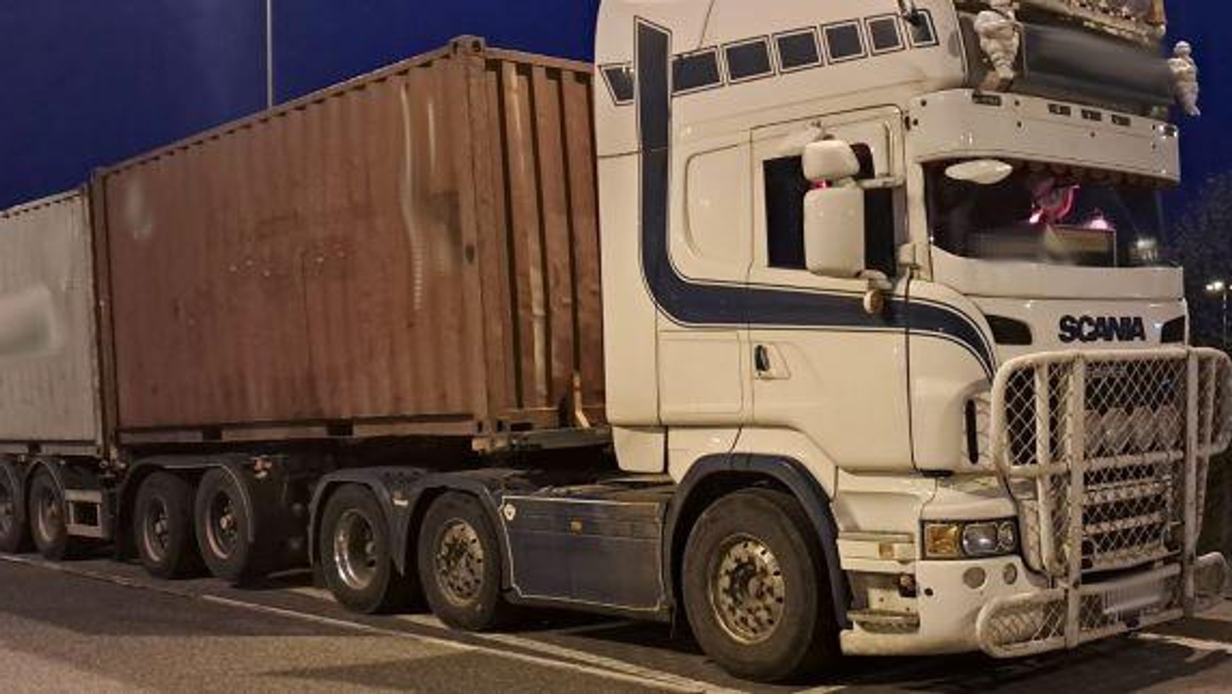 Na autostradzie A1 inspektorzy Inspekcji Transportu Drogowego (ITD) z Bydgoszczy zatrzymali do kontroli tzw. stonogę. Zespół pojazdów na dwóch spiętych ze sobą na sztywno przyczepach przewoził kontenery morskie.
