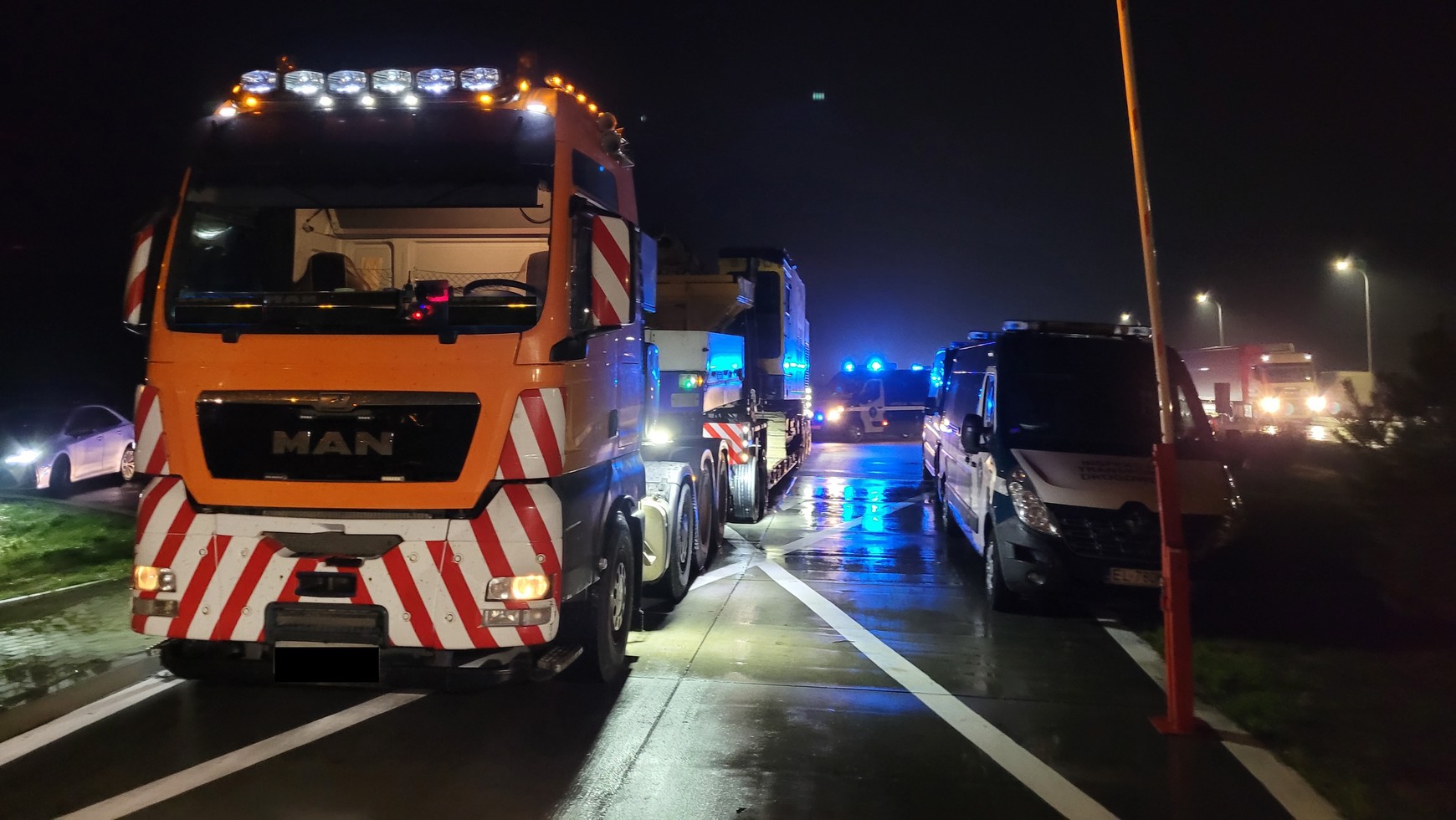 Już z daleka zespół pojazdów transportujący palownicę zwracał na siebie uwagę swoimi ponadprzeciętnymi rozmiarami. Inspektorzy byli niemal pewni, że był to pojazd nienormatywny, którego przejazd wymaga uzyskania odpowiedniego zezwolenia. Trasa jest wtedy uzgadniania z zarządcą, żeby przeciwdziałać degradacji dróg, często potrzebny jest też pojazd pilotujący.