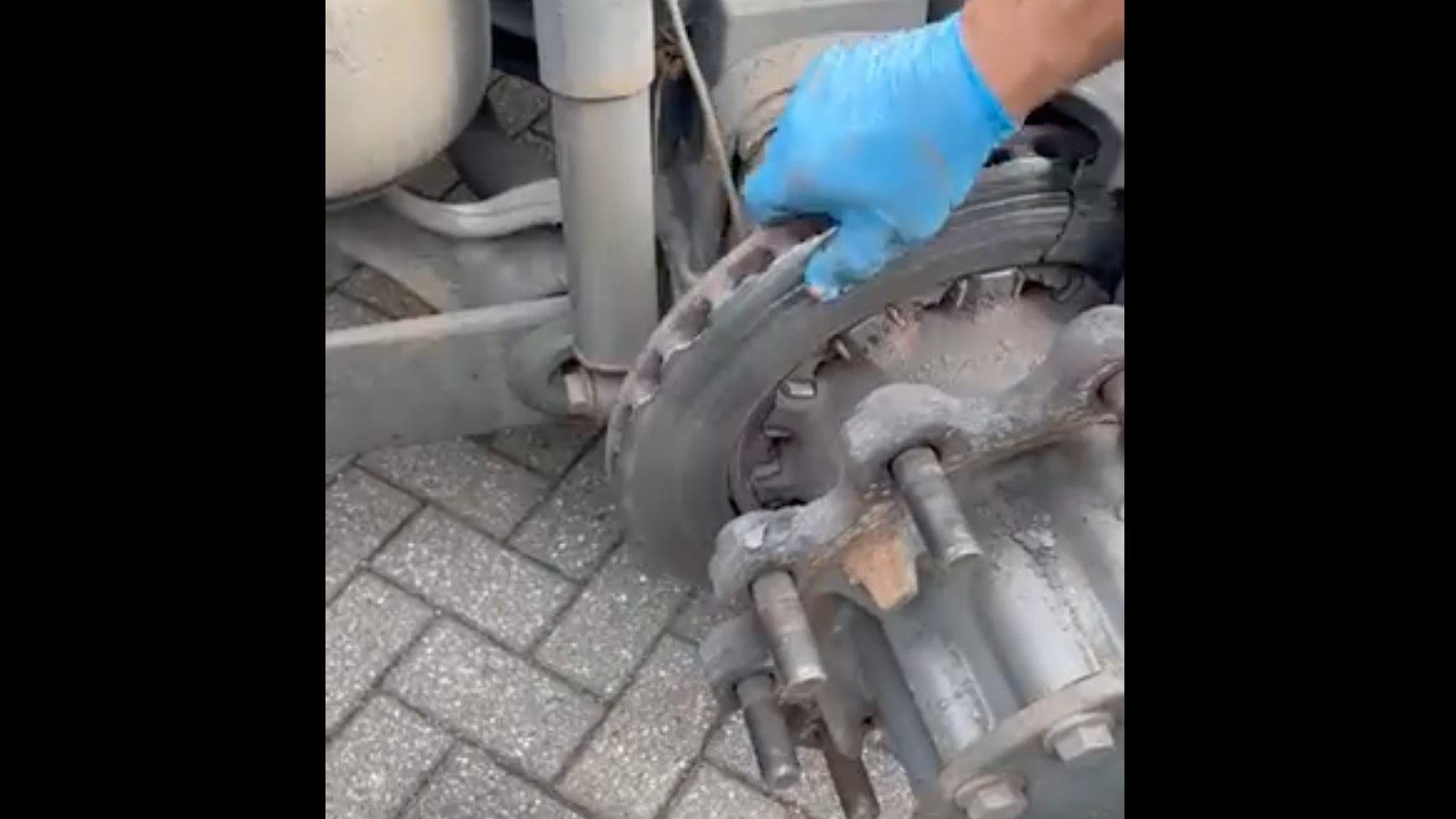 Opisywana ciężarówka została skontrolowana w Wielkiej Brytanii pod miejscowością Stafford. Uwagę inspektorów DVSA przykuł hamulec osi napędowej ciągnika. Po pierwsze tarcza miała głębokie pionowe pęknięcie. To wystarczyłoby, żeby uznać ją za niesprawną, ale w tym przypadku był to dopiero początek problemów. Wspomniana tarcza swobodnie obracała się na osi. Oznacza to, że hamulec nie działał w ogóle. Naszym zdaniem taka tarcza prawdopodobnie robiła ogromny hałas, bo w momencie zaciśnięcia się klocków hamulcowych obracała się, uderzając o metalową oś. Jak to możliwe, że nikt jej nie usłyszał? Może klocki hamulcowe również nie działały?