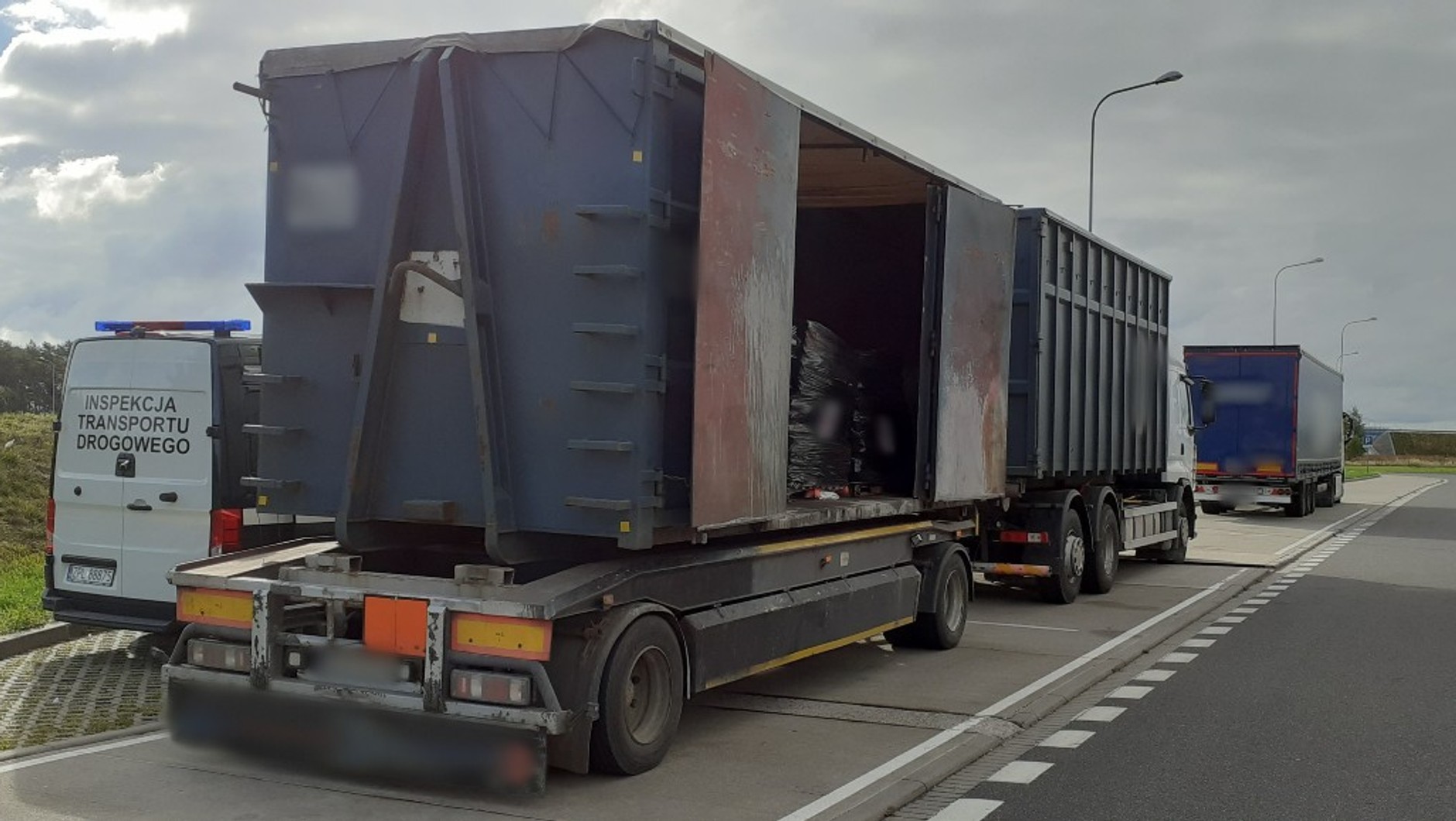 Samochodem ciężarowym z przyczepą przewożono odpady niebezpieczne w postaci eternitu. W trakcie czynności kontrolnych inspektorzy zauważyli, że niebezpieczny odpad przewożony był w uszkodzonych opakowaniach i wysypywał się z nich. Kawałki eternitu leżały luzem na podłodze przestrzeni transportowej. Poza kłopotami z ładunkiem okazało się, że TIR nie miał ważnego przeglądu technicznego. W zespole pojazdów brakowało również obowiązkowego wyposażenia awaryjnego w postaci klina pod koła oraz stojącego znaku ostrzegawczego.