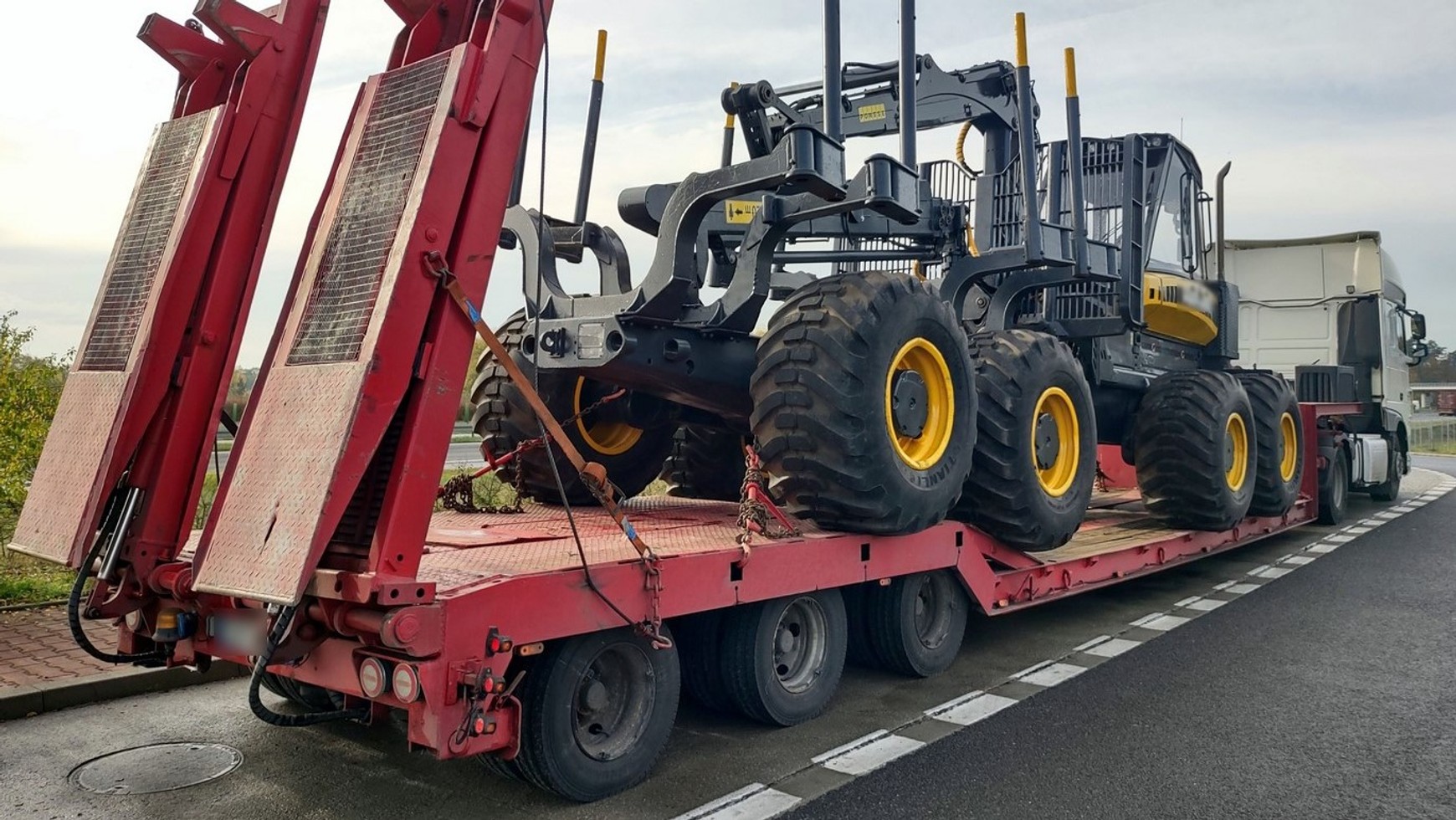 Kontrola na drodze S5 w okolicach Poznania nie zakończyła się za dobrze dla przewoźnika. Okazało się bowiem, że kontrolowany zestaw, przewożący maszynę do prac leśnych, jest zupełnie niedostosowany do przewozu tak ciężkich i dużych ładunków.