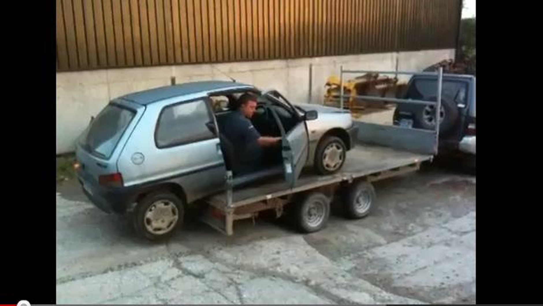 Jak ściągnąć Peugota z przyczepki? To bardzo proste! Wystarczy wyśmienity kierowca , dwóch pomocników i duża dawka wyobraźni