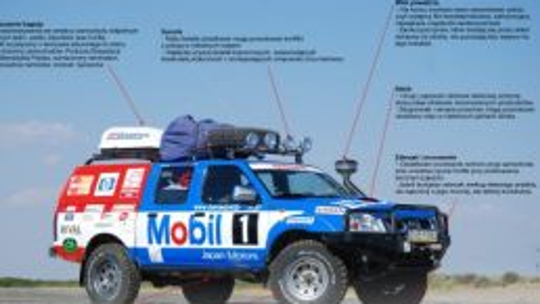 Przed wyprawą należy dokładnie sprawdzić stan techniczny silnika, decydując się na profilaktyczną wymianę takich części, jak łożyska alternatora czy elementy sprzęgła. Warto pamiętać o dokładnym sprawdzeniu chłodnicy oleju i połączonego z nią termostatu – zapewnia to odpowiednie warunki pracy oleju, a tym samym trwałość silnika. W terenie silniki muszą radzić sobie z dużymi obciążeniami, każdaz przeszkód to inne warunki pracy oleju, inne temperatury, często skrajnie różne na przestrzeni kilkuset metrów. Jednym z czynników poprawiających wydajność silnika są odpowiednio dobrane środki smarne. Na potrzeby Ekspedycji Szlakiem Benedykta Polaka eksperci zdecydowali się na olej syntetycznyMobil 1 5W-50, stworzony specjalnie do silników pracujących w ciężkich warunkach eksploatacyjnych.Co więcej, Mobil 1 5W-50 przewyższa wymagania specyfikacji jakościowych dyktowanych przez producentów pojazdów dla wysokoobciążonych silników zarówno benzynowych, jak i wysokoprężnych nowoczesnych pojazdów.
