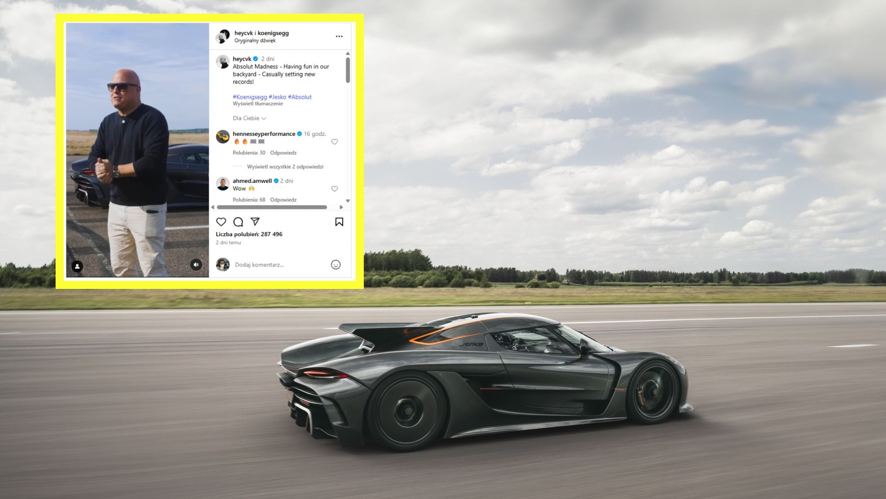 Christian von Koenigsegg pokazał nagranie z tej próby