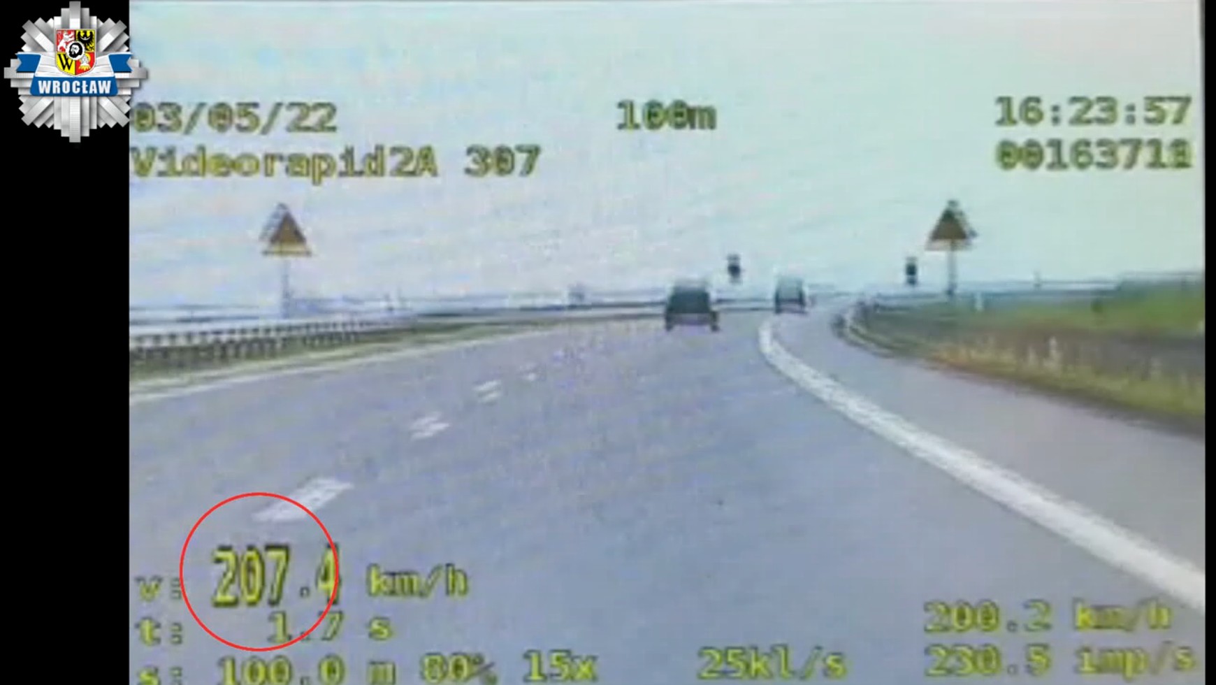 Funkcjonariusze z Wydziału Ruchu Drogowego komendy miejskiej patrolując Autostradową Obwodnicę Wrocławia, zauważyli kierowcę Opla, który rozpędził swoje auto do 207 km/h. W tym miejscu obowiązuje ograniczenie prędkości do 120 km/h. Mundurowi zatrzymali 51-letniego wrocławianina do kontroli i tym samym zakończyli ten niebezpieczny rajd. Kierowca nie miał nic na swoje usprawiedliwienie i poczuwał się do winy. Za popełnione wykroczenie, został ukarany mandatem w wysokości 2500 zł.