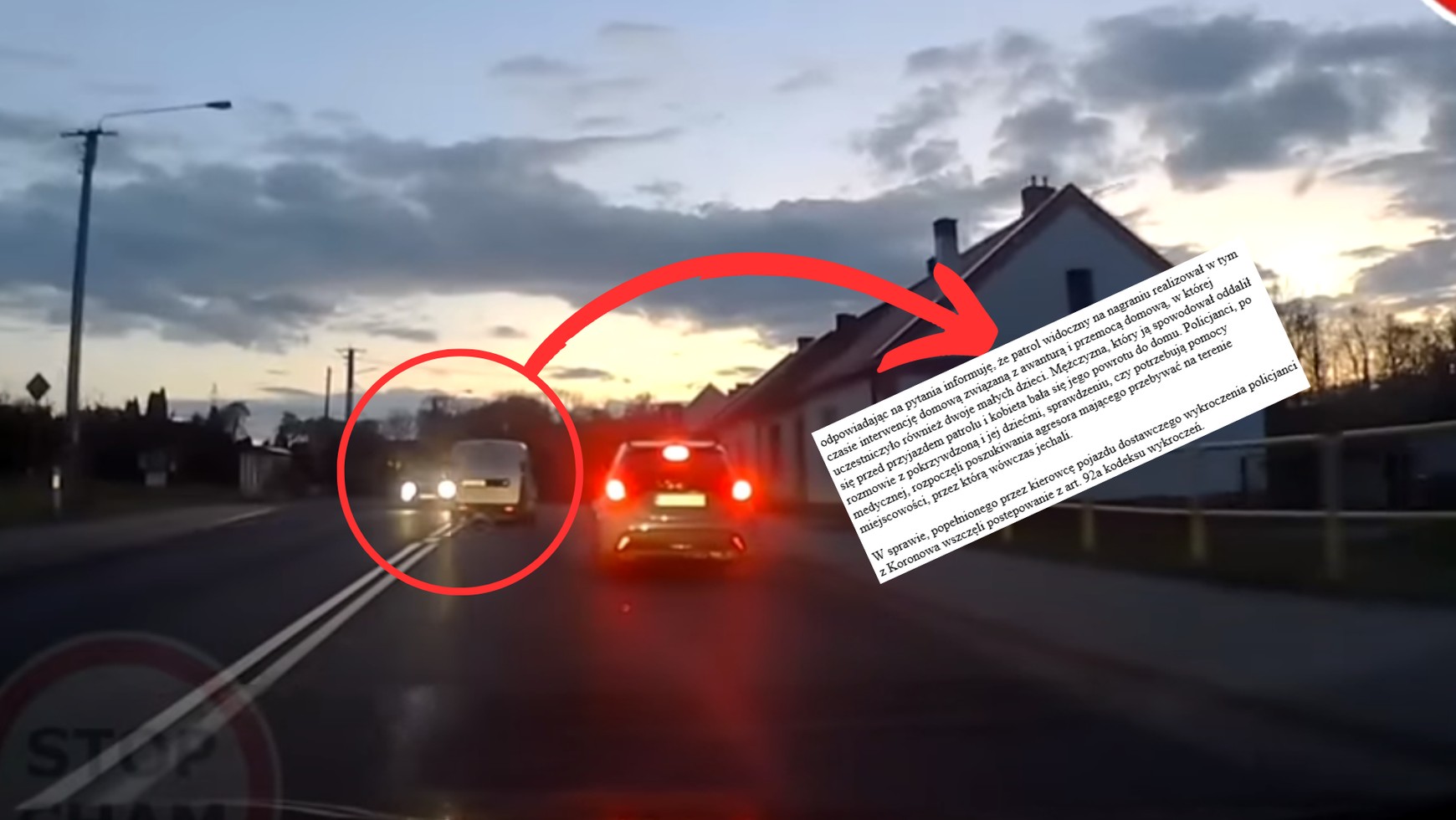 Z informacji przekazanych nam przez policję wynika, że mimo iż funkcjonariusze nie zatrzymali wtedy kierowcy białego samochodu, to istnieją szanse na to, że nie uniknie on odpowiedzialności. "W sprawie popełnionego przez kierowcę pojazdu dostawczego wykroczenia policjanci z Koronowa wszczęli postępowanie z art. 92a kodeksu wykroczeń" — czytamy.