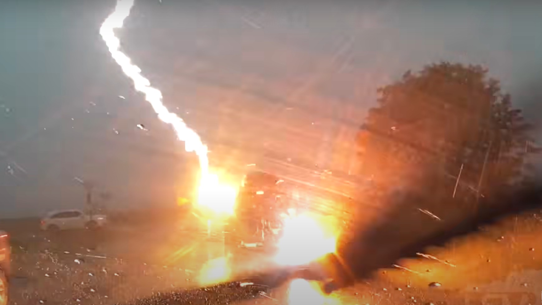 Widok, który możemy zaobserwować na nagraniu, jest naprawdę przerażający. Zaraz po uderzeniach piorunów w Jeepie zgasły światła. Układy elektryczne pojazdu zostały prawdopodobnie "usmażone". Ponadto wydaje się, że Jeep Grand Cherokee nieznacznie "przykuca" po uderzeniach piorunów, co wskazuje na to, że mogły pęknąć w nim opony.