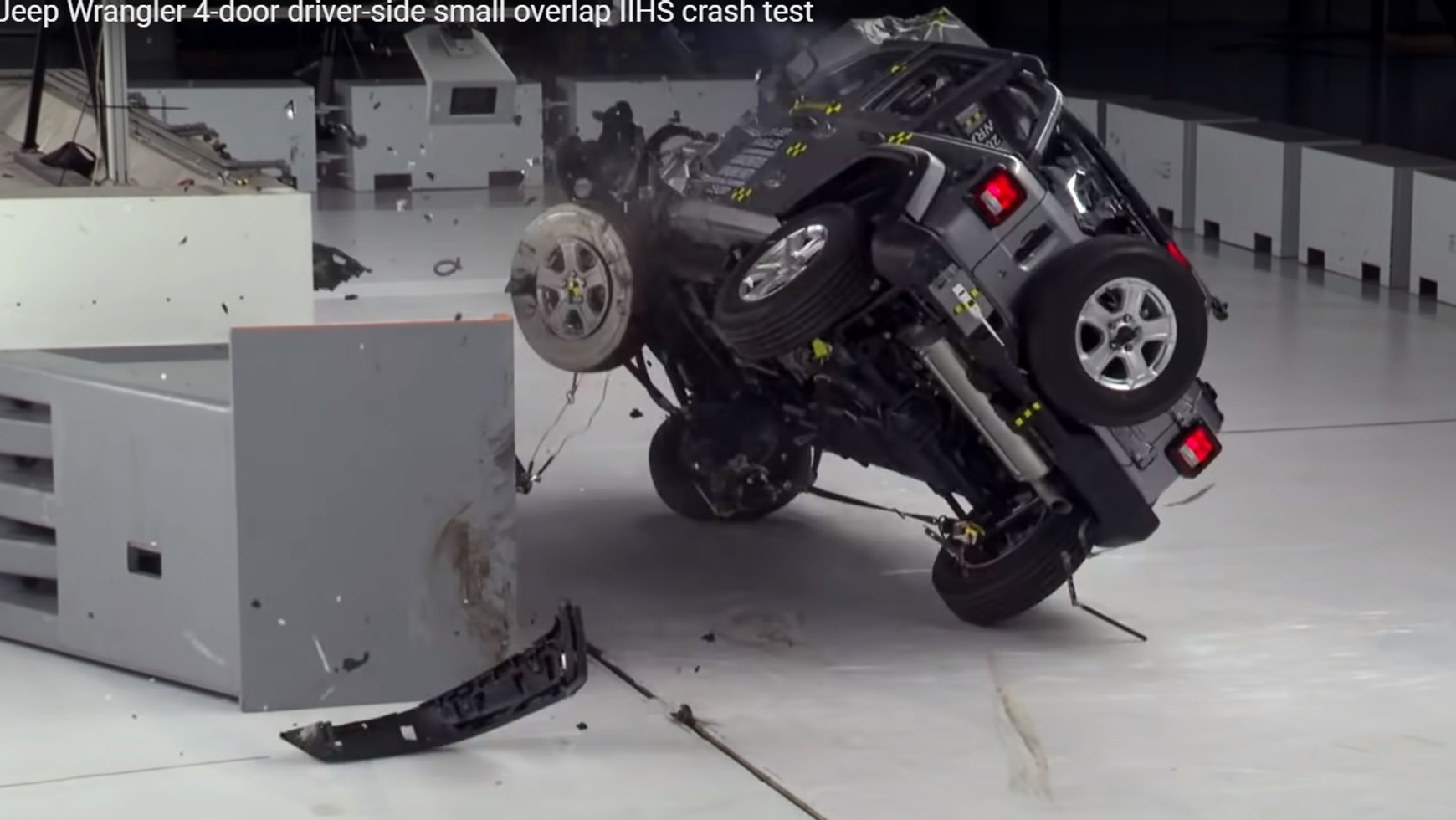 Skąd takie kiepskie notowania dość nowego modelu? Okazuje się, że podczas prób przeprowadzonych przez IIHS samochód kończył jazdę ba boku, co do tej pory nie zdarzyło się w historii testów organizacji. W teście nazwanym "small overlap" (to uderzenie z prędkością nieco ponad 64 km/h w barierę dość niewielką częścią stanowiącą 25 proc. szerokości przodu auta) Jeep wywracał się na bok, co testujący uznali za niedopuszczalne i szczególnie niebezpieczne (ze względu na konstrukcję i możliwość demontażu drzwi czy dachu - w samochodzie brak kurtyn powietrznych).