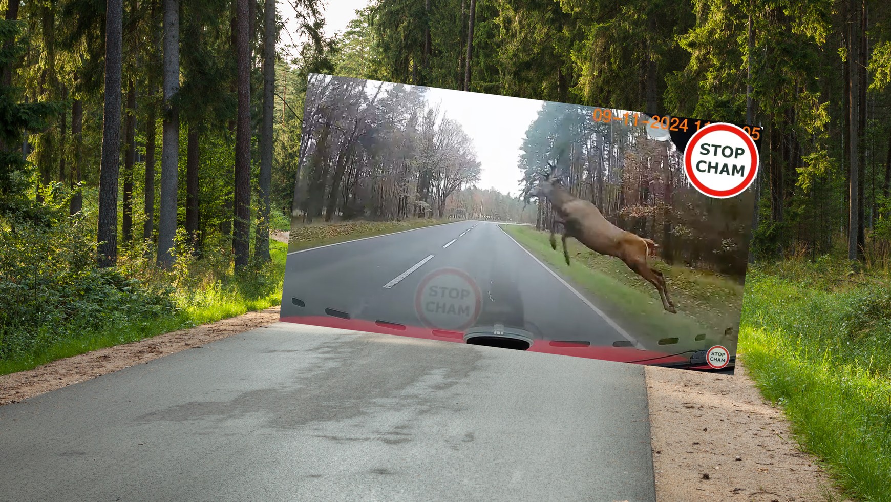 Mija dosłownie kilka sekund i z lasu naprawdę wybiega jeleń widoczny na znaku. Prowadzący samochód zdążył zareagować i rozpoczyna awaryjne hamowanie. Zwierzę dosłownie przeskakuje nad maską jego pojazdu i znika w zaroślach. Szybsza jazda lub po prostu mniej szczęścia mogło doprowadzić do tragedii.