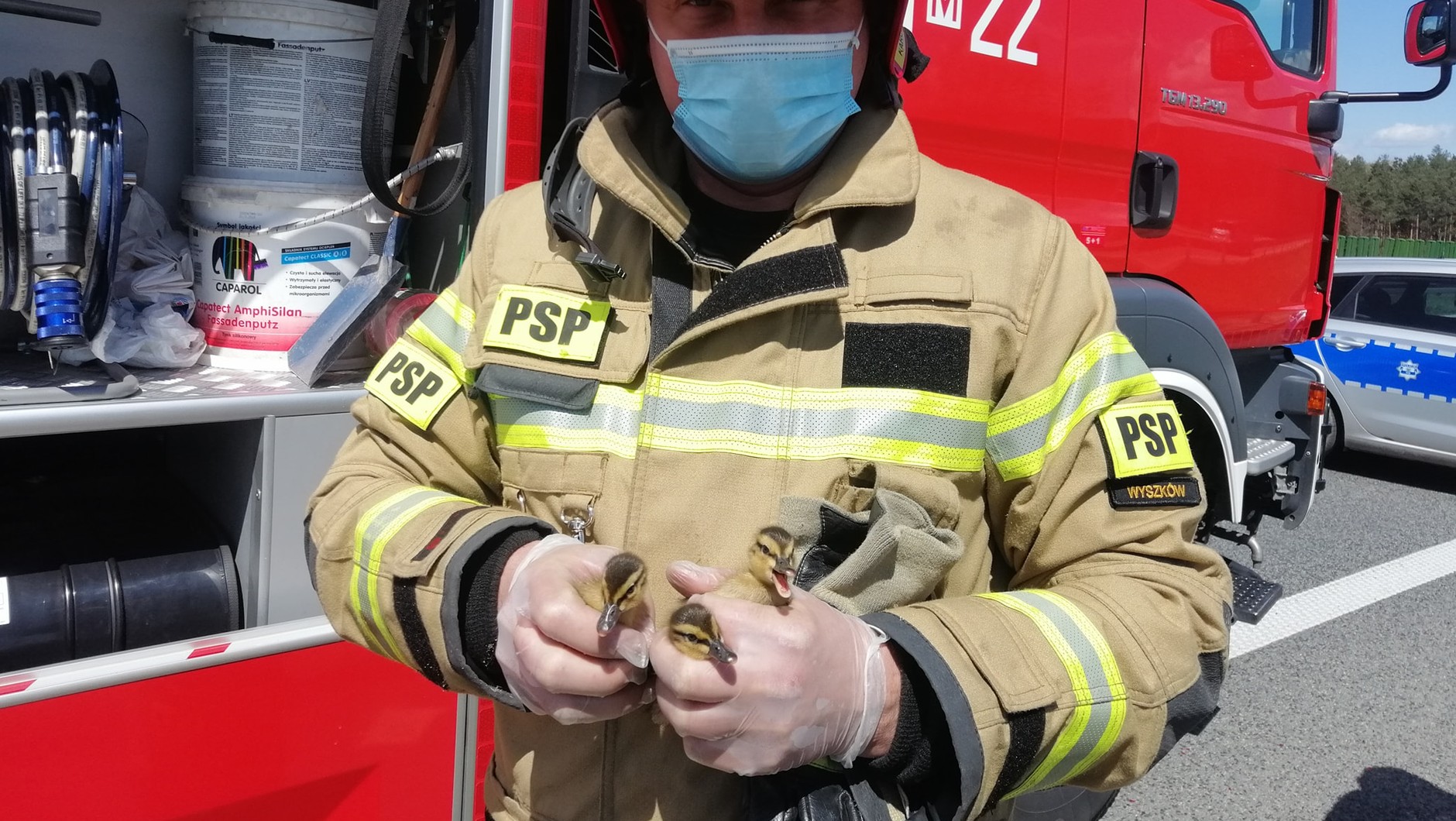 Karambol miał miejsce po południu tuż za zjazdem z trasy S8 do miejscowości Niegowo. Z ustaleń policji z Wyszkowa wynika, że kierujący Nissanem oraz Fiatem zauważyli przechodzące przez drogę małe kaczki. Kierowcom tych samochodów udało się wyhamować przed ptakami, ale sztuka ta nie udała się już kierowcy busa ciągnącego lawetę z osobowym BMW.