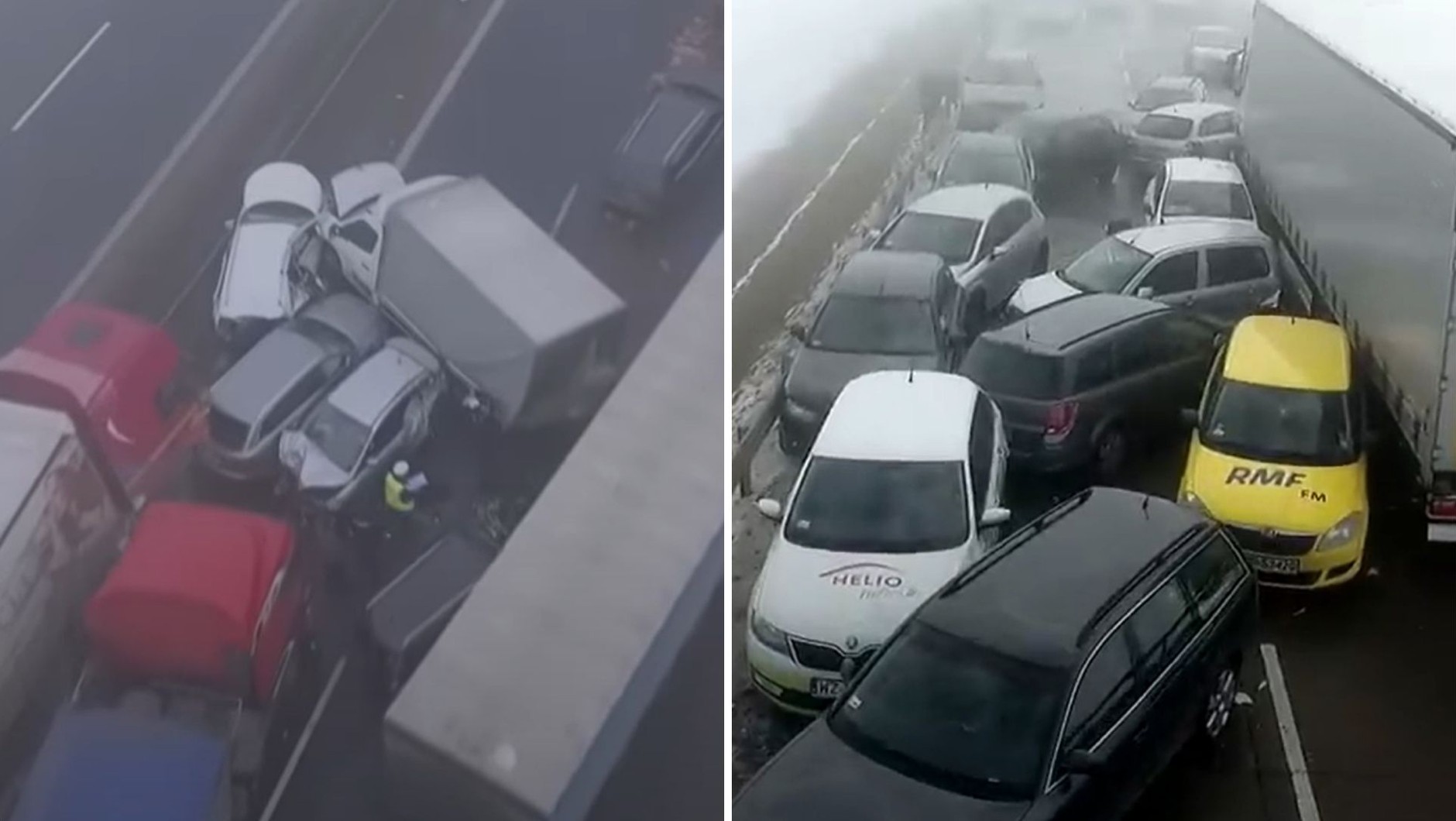Karambol rozpoczął się od czołowego zderzenia samochodu osobowego z TIR-em. W powietrzu unosiła się wówczas mgła, a powierzchnia drogi była punktowo oblodzona i występował na niej tzw. czarny lód.
