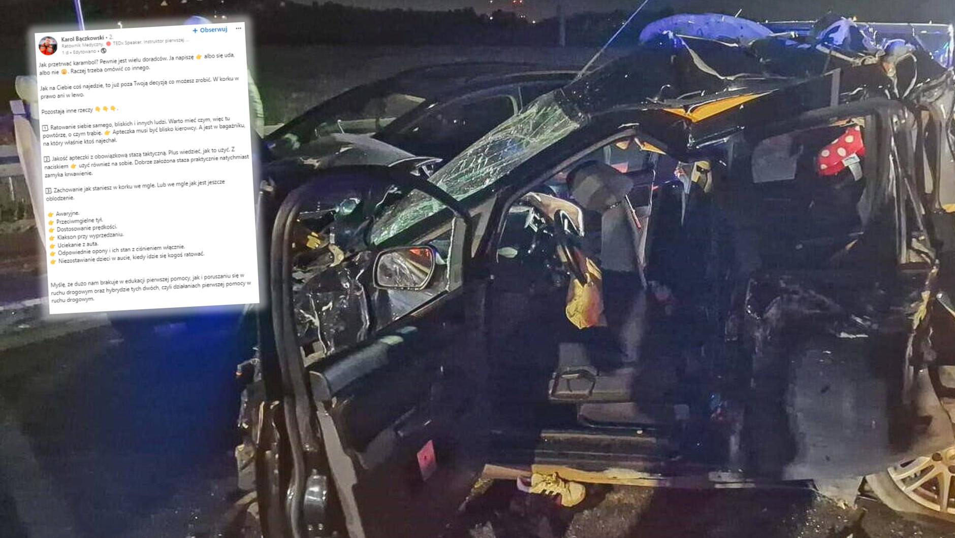 Głos w sprawie zajął znany trójmiejski ratownik medyczny Karol Bączkowski, który w mediach społecznościowych figuruje jako Karol Ratownik. Medyk wskazał, jak zachować się podczas karambolu, aby zminimalizować zagrożenie i zadbać o swoje bezpieczeństwo.